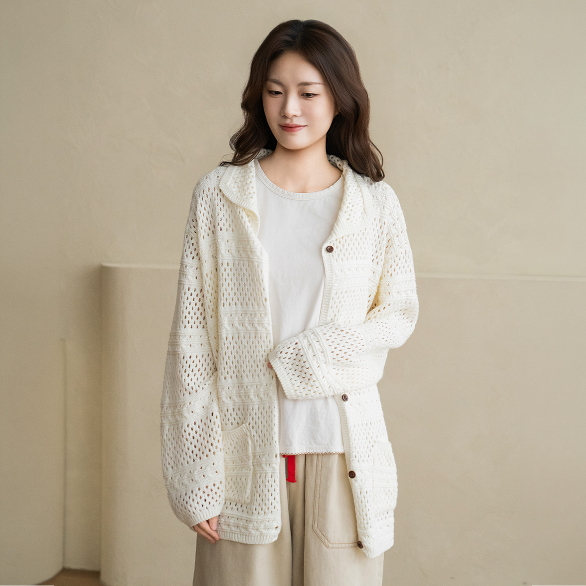 [Natural Poem] Crochet Knit Cardigan-CA2603014-