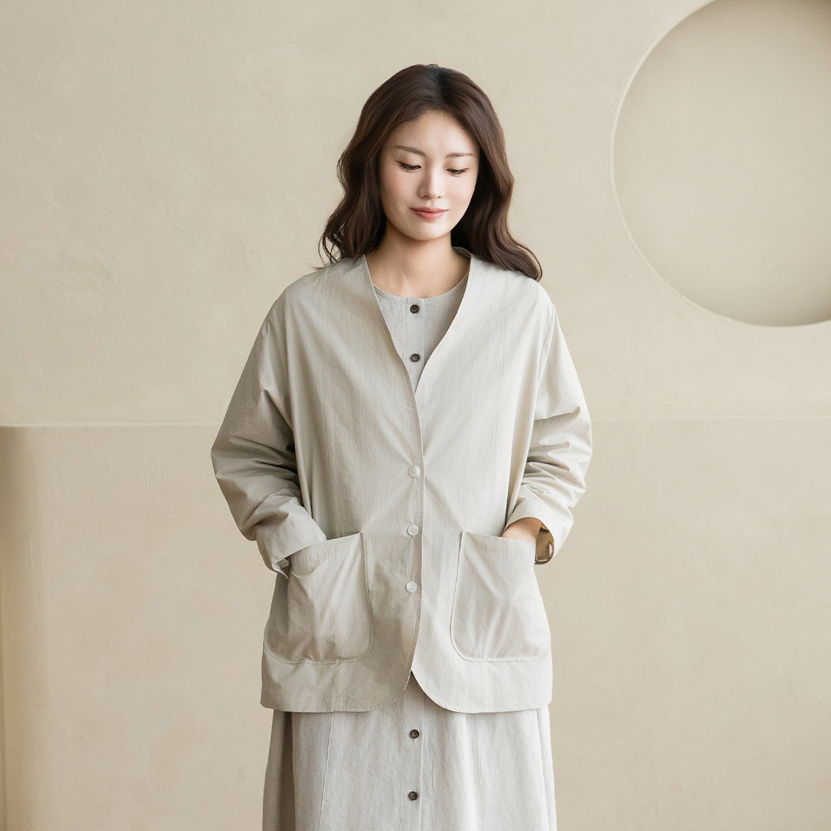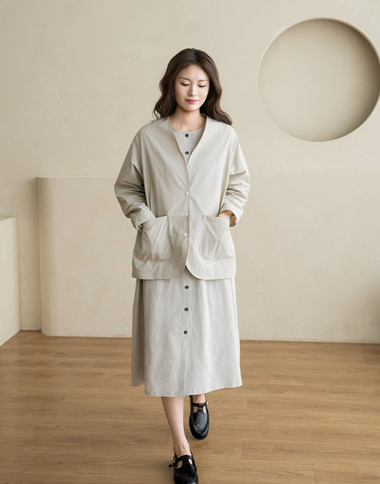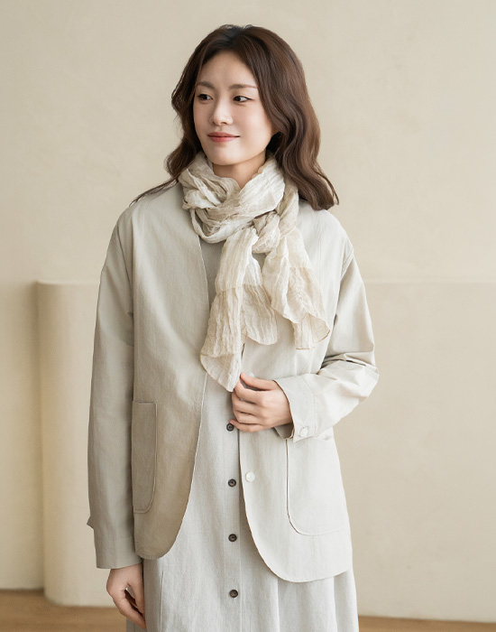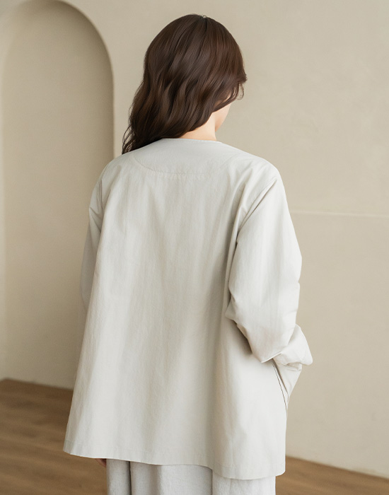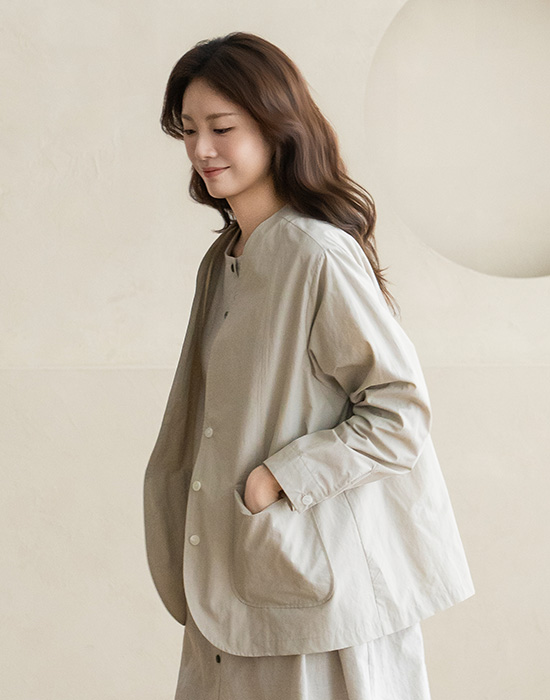 [Natural Poem] Collarless Nylon Jacket-JK2603032-