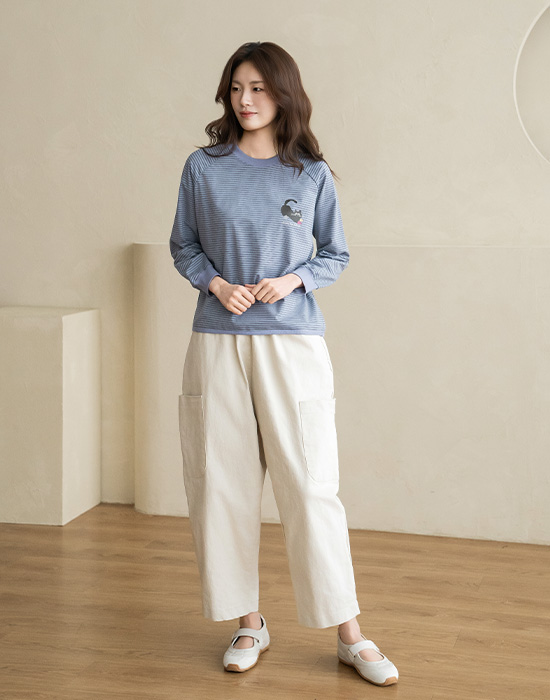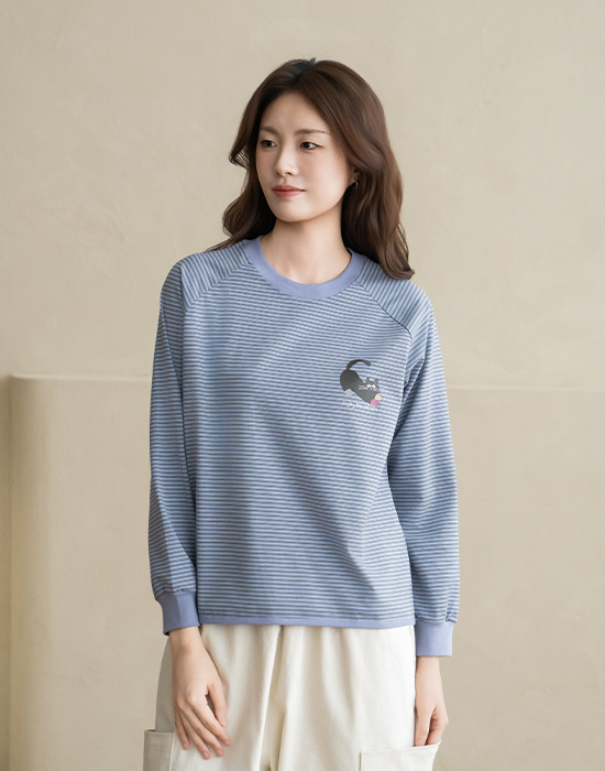 [Natural Poem] Cat's Striped T-shirt-TE2603049-