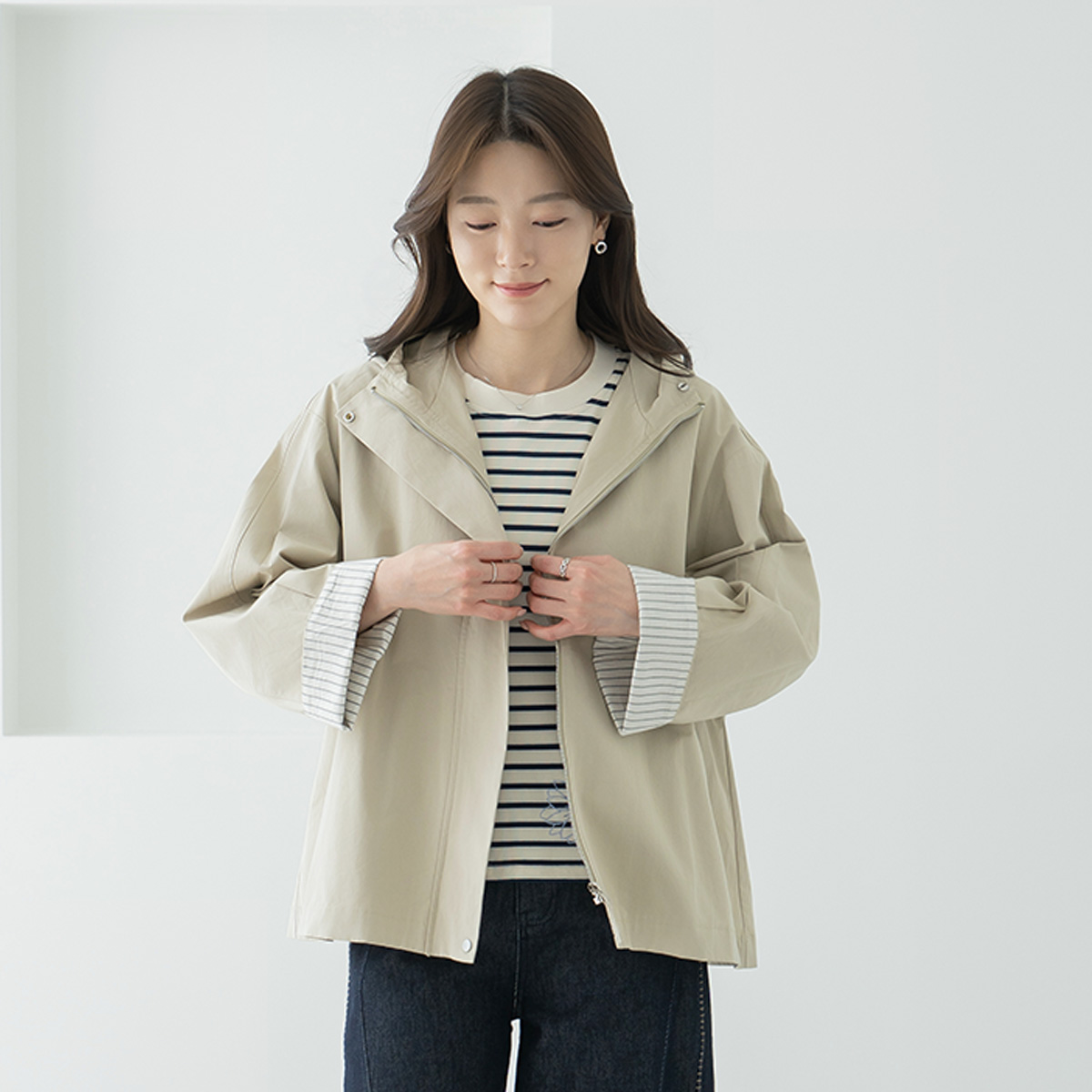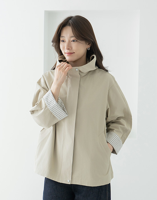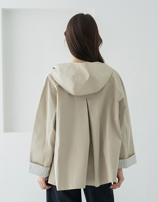 Striped Color Block Roll-up Hooded Jumper-JP2603036-
