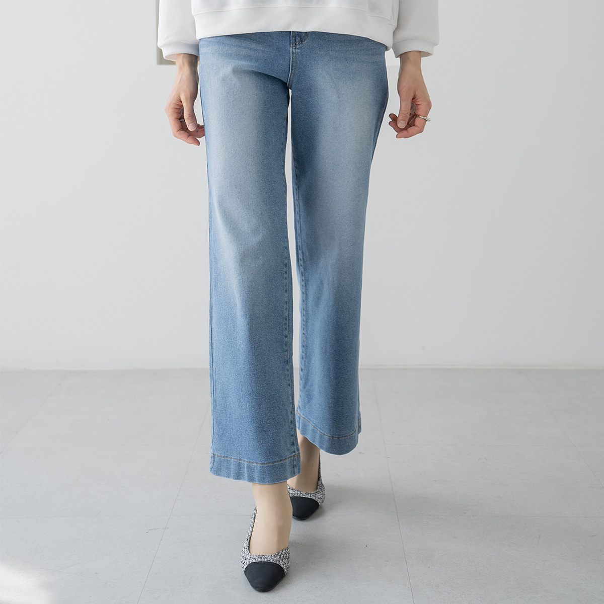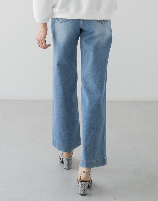 Elastic Waist Wide Denim Pants-PN2603067-