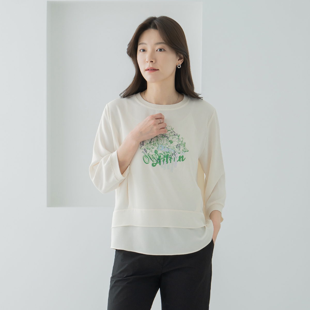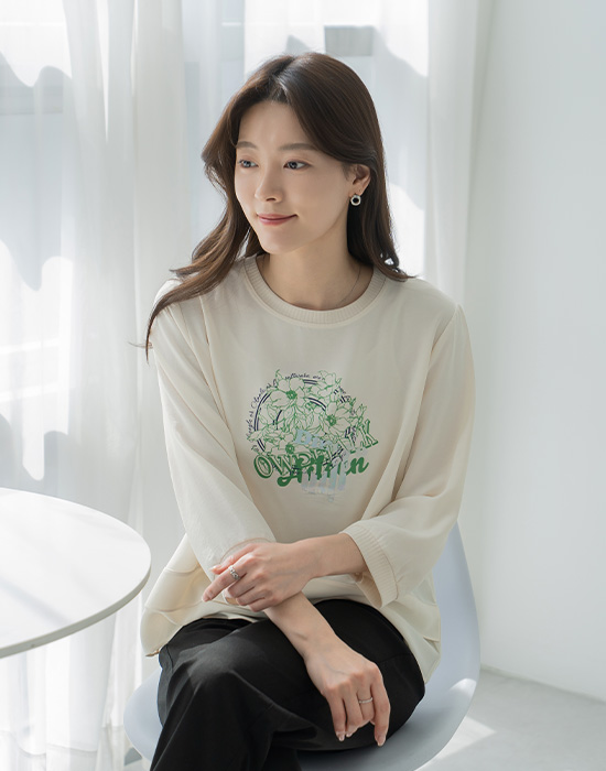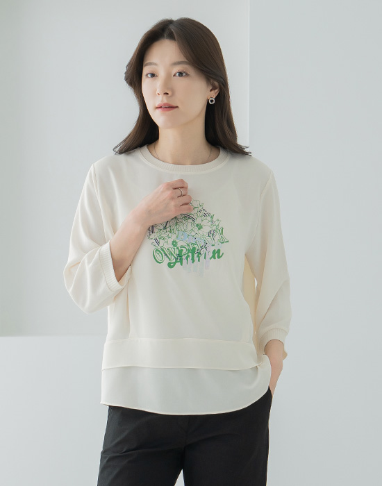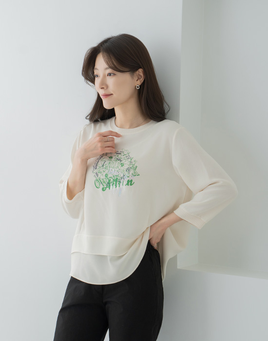 Flower Print Layered T-shirt-TE2603065-