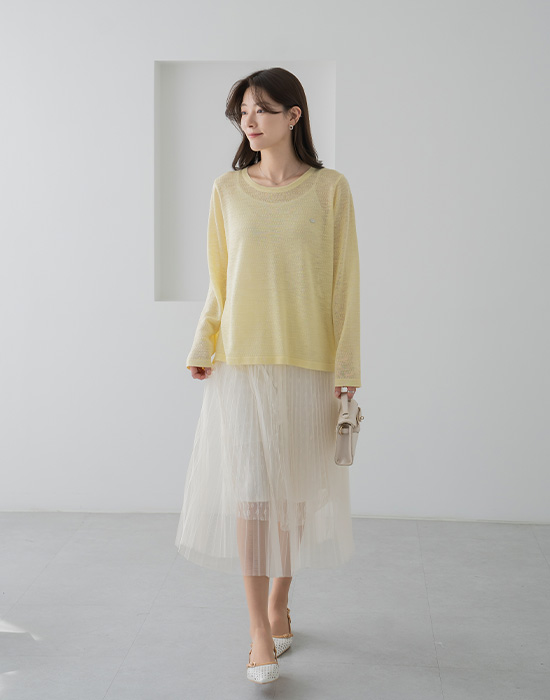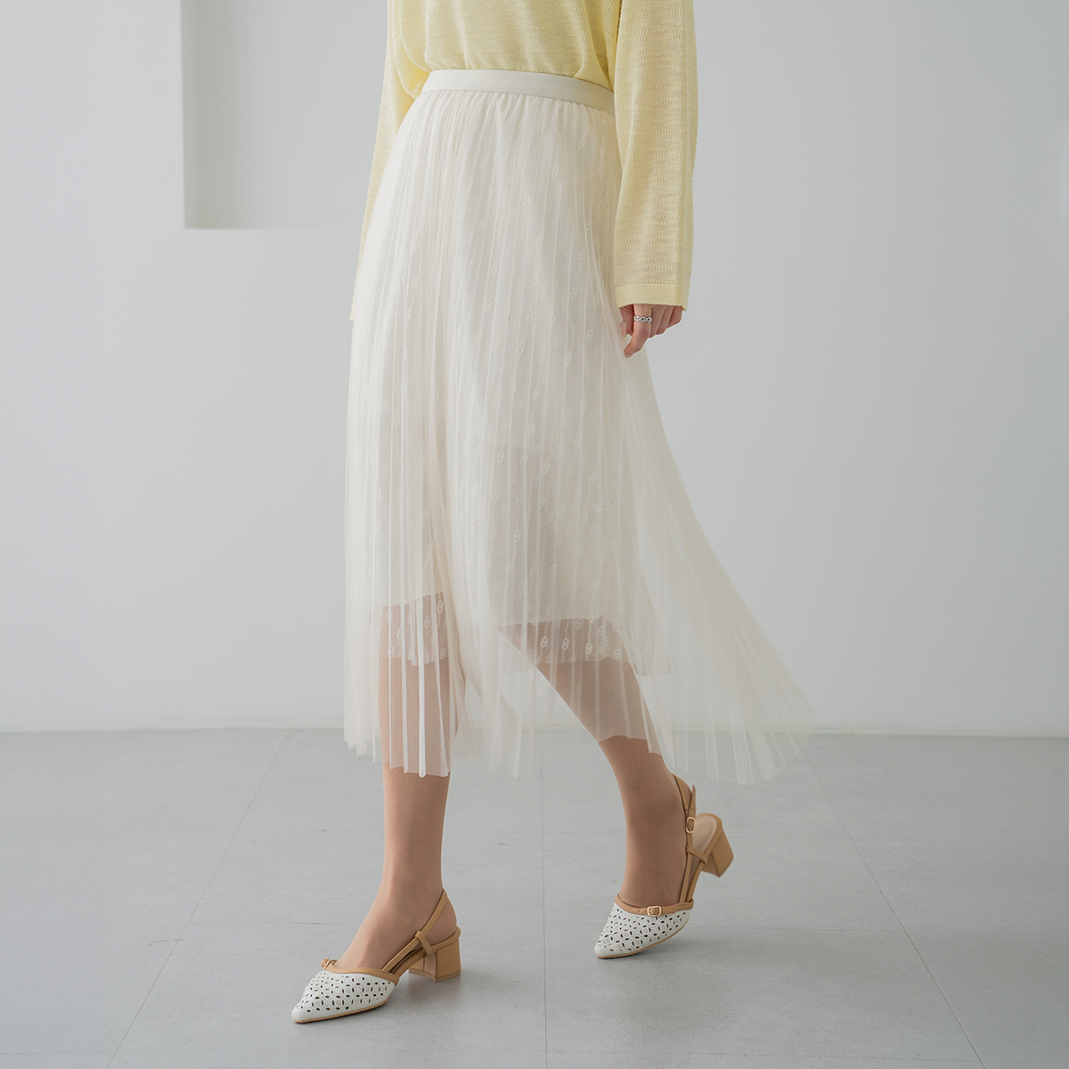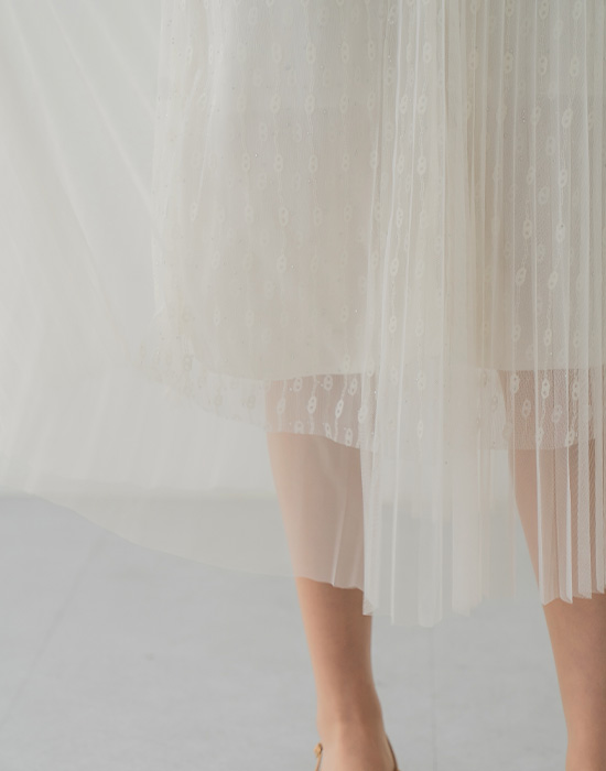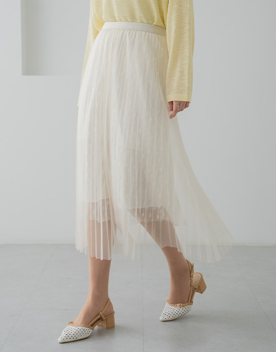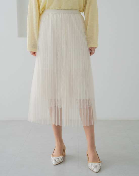 Mesh Shirred Banding Skirt-SK2603004-