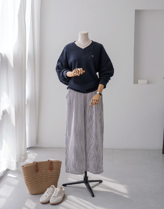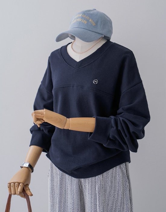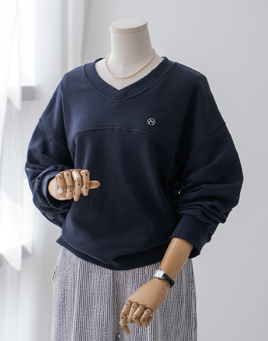 [Risen] V-Neck Loose Fit Sweatshirt-LTE2603011-