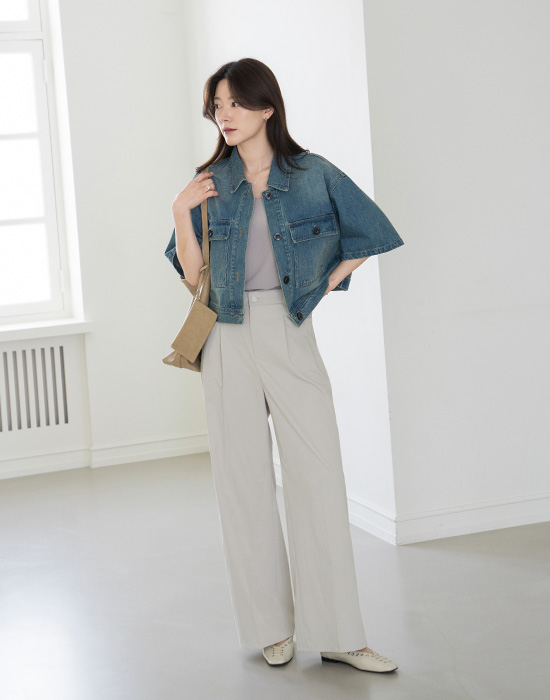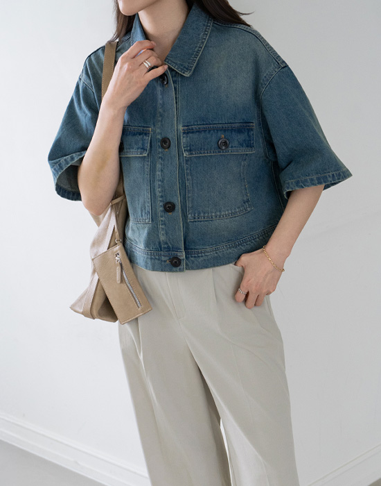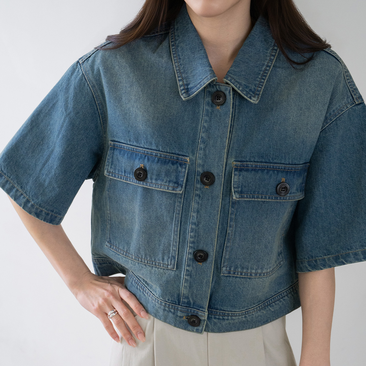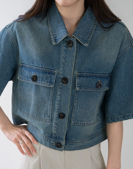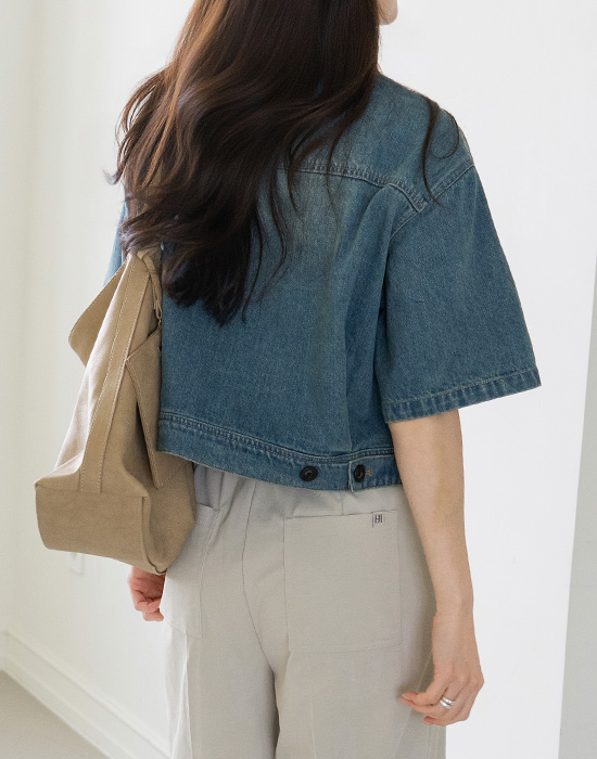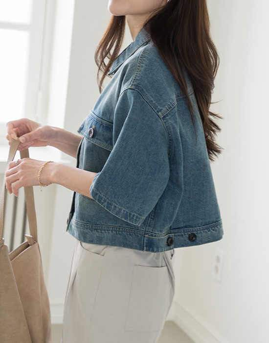 [Modern Basic] Eblevan Crop Denim Jacket-JK2604004-