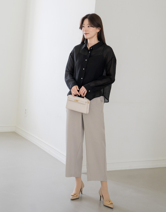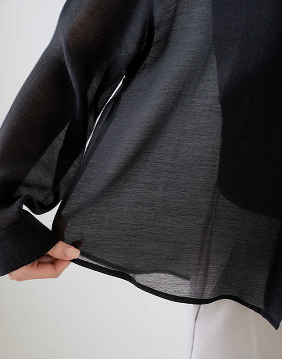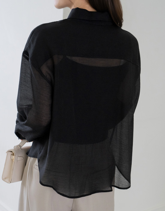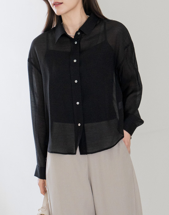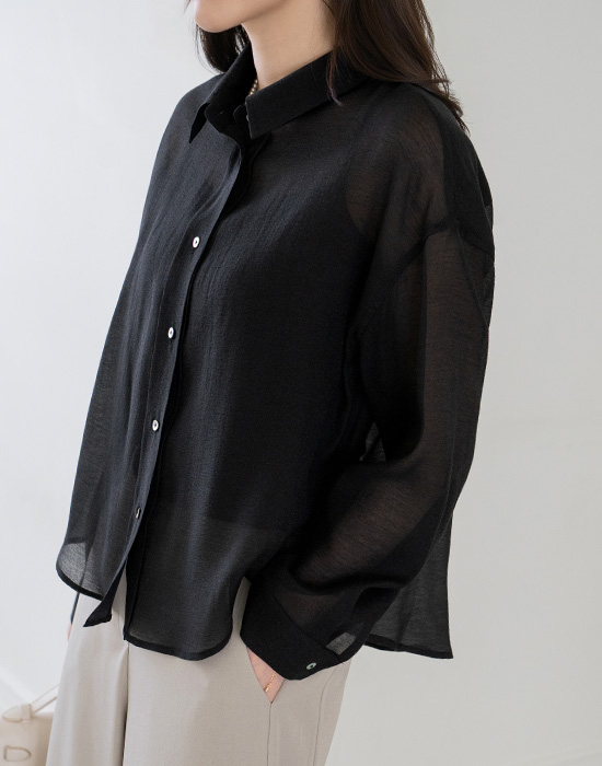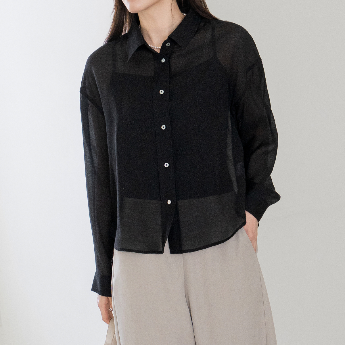 [Modern Basic] See-through Tencel Shirt Blouse-BL2604006-