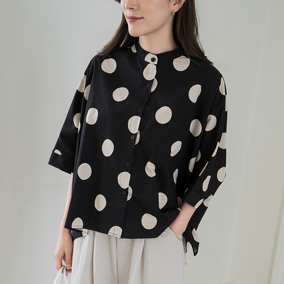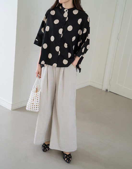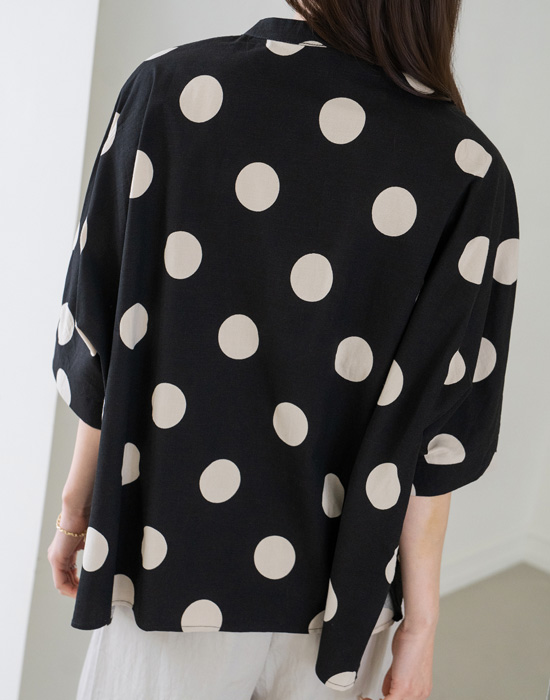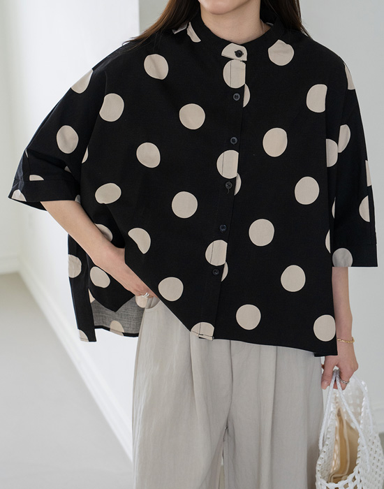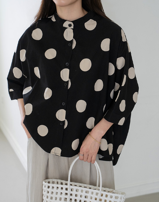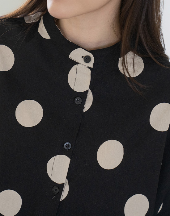 [Modern Basic] Dot Mandarin Collar Blouse-BL2604002-