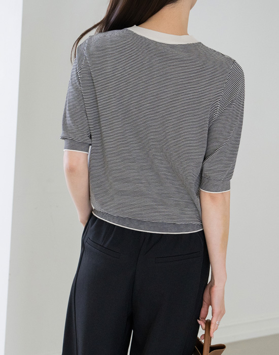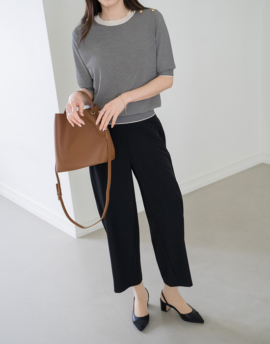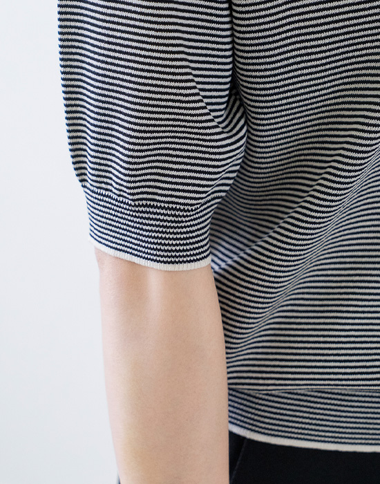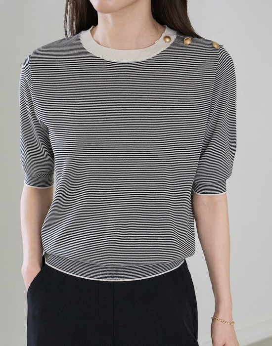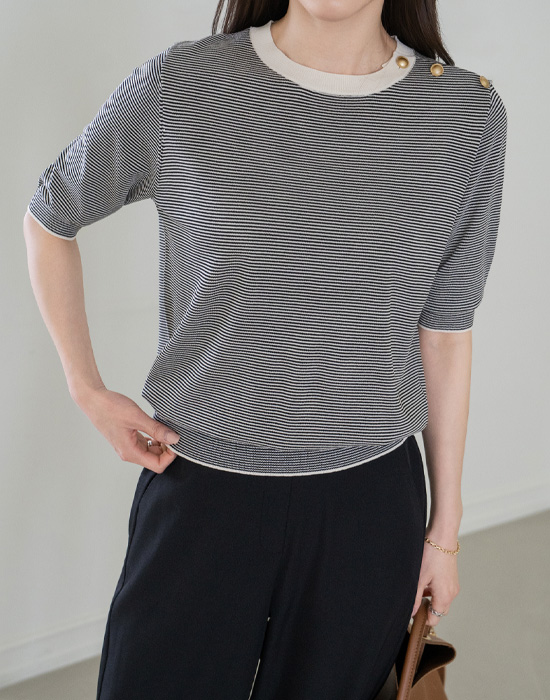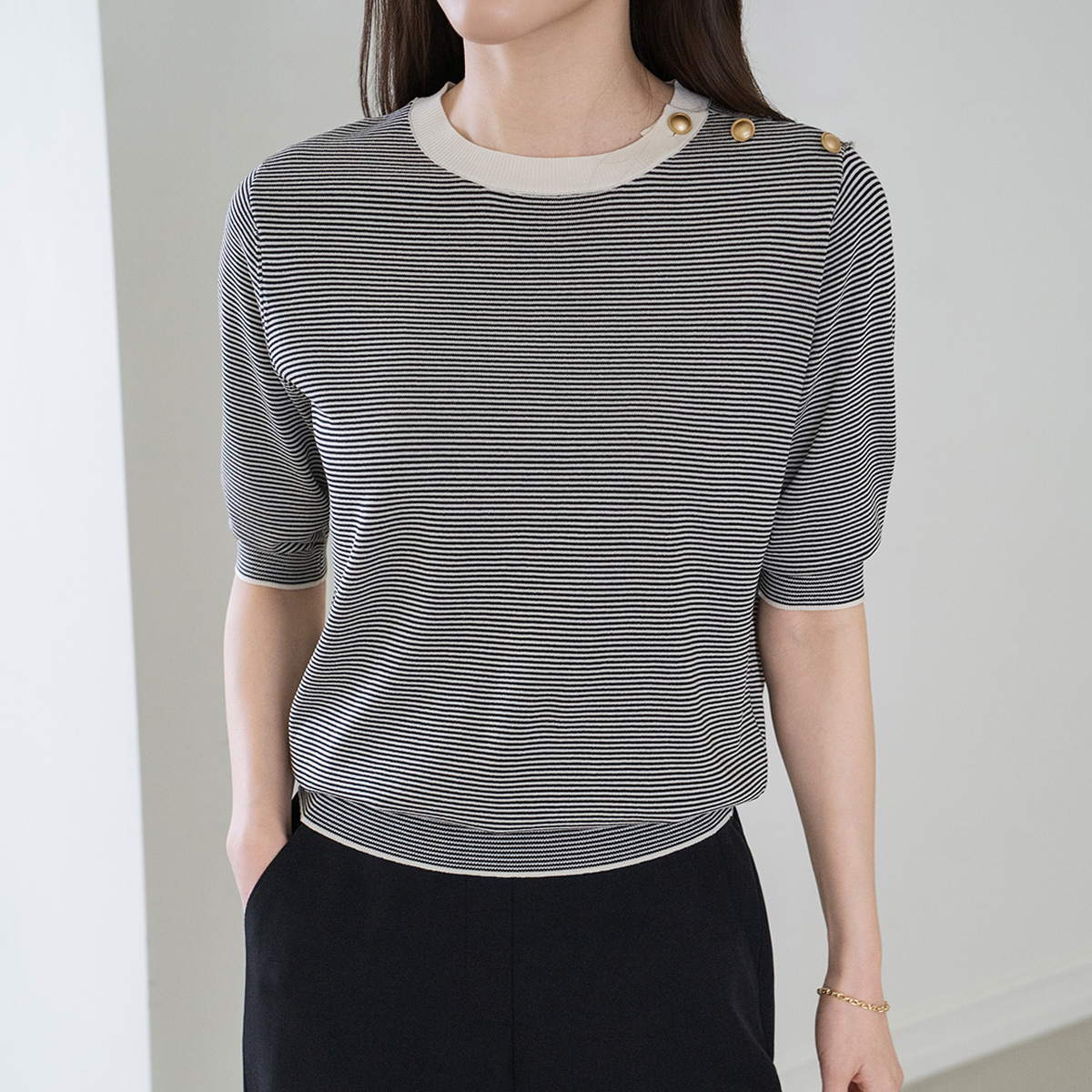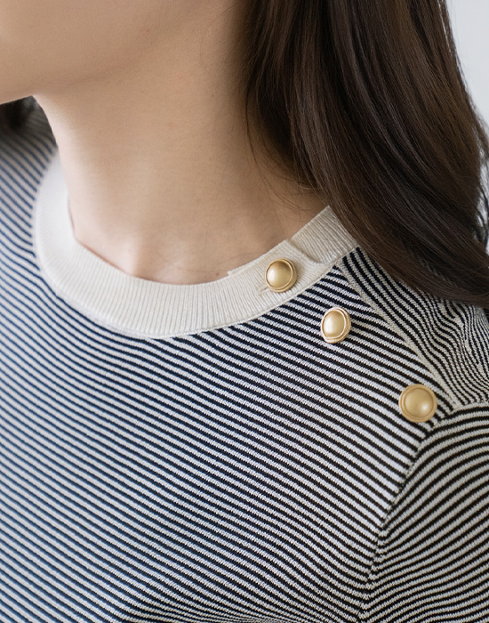 [Modern Basic] Gold Button Striped 5/8 Sleeve Knit - KN2604003 -