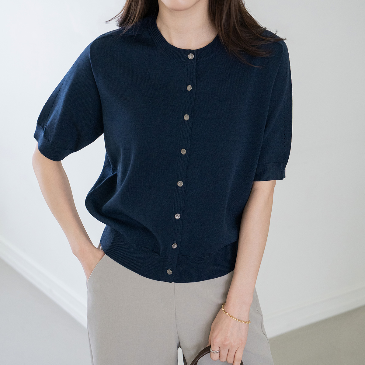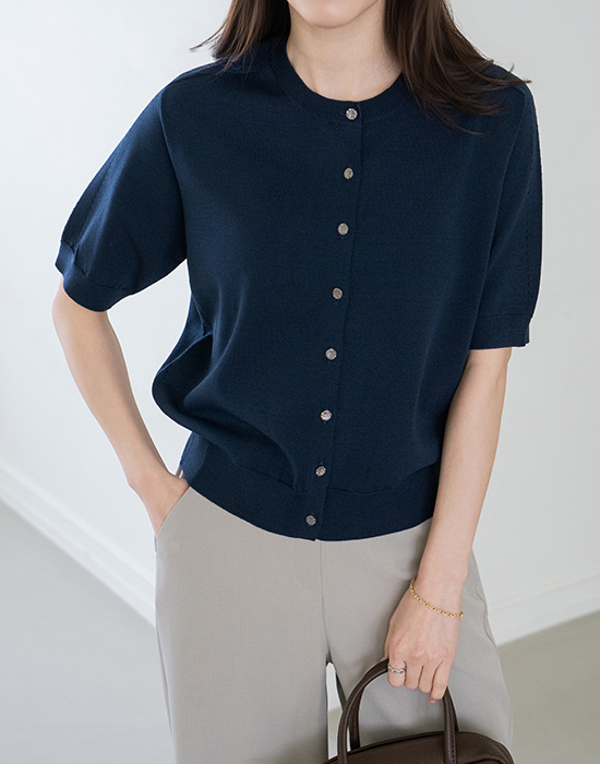 [Modern Basic] Knit Cardigan with 3-Quarter Buttons-CA2604001-