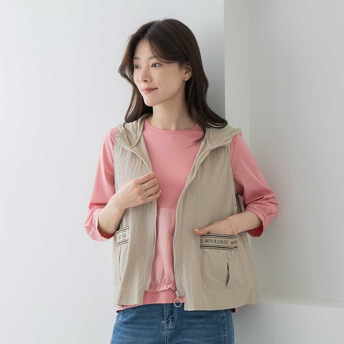 Rustling Label Hooded Vest-VE2604004-