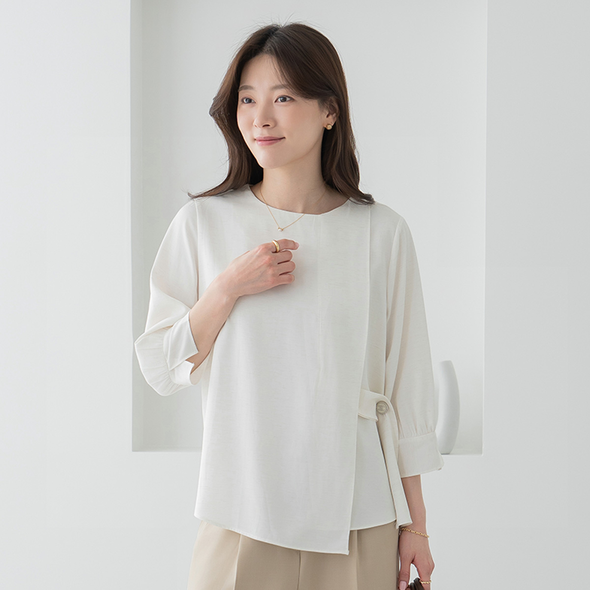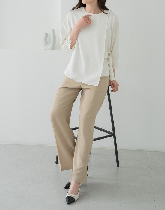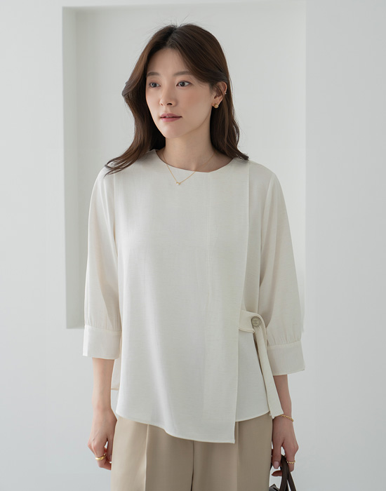 [Classy Madame] Side Button Wrap Blouse-BL2604021-