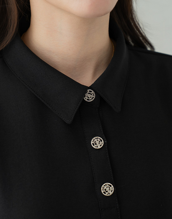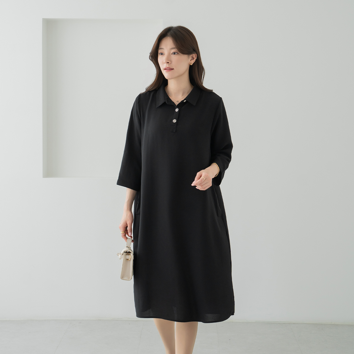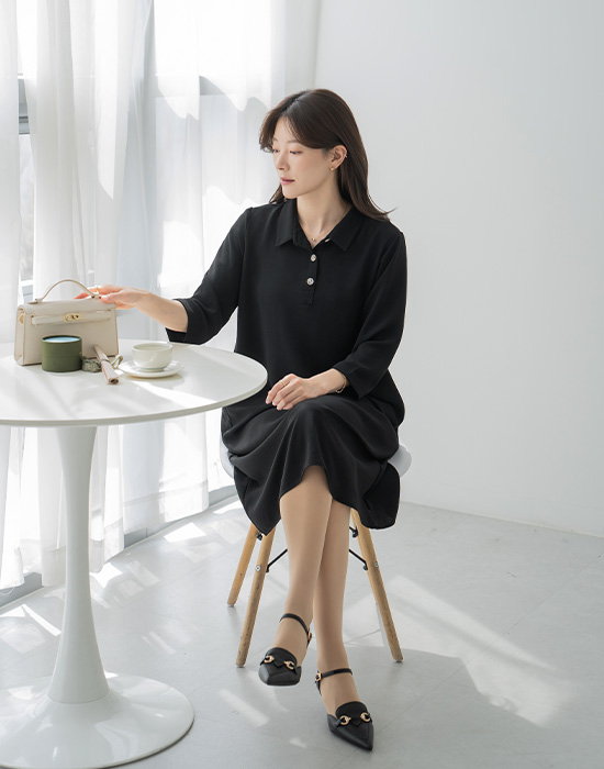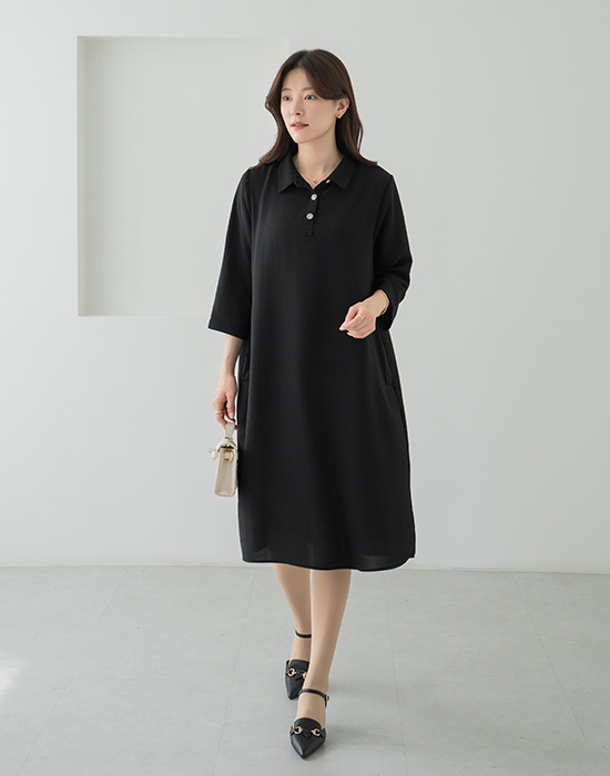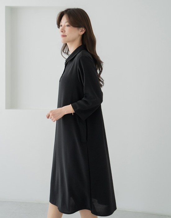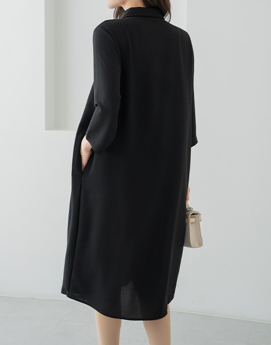 Flowy Hidden Pocket Collar Dress-OP2604003-