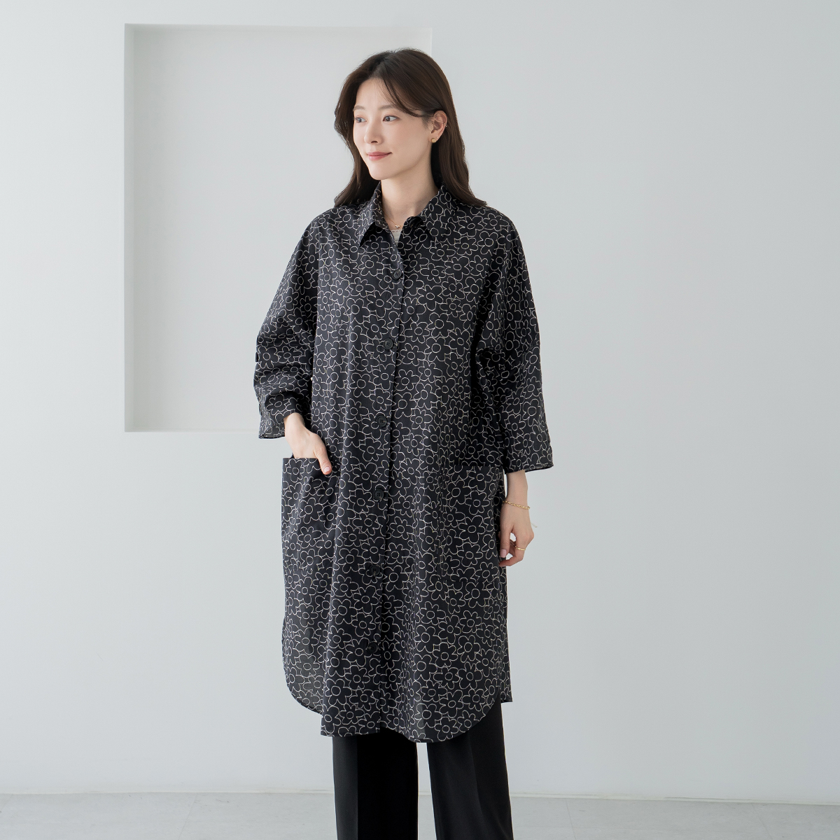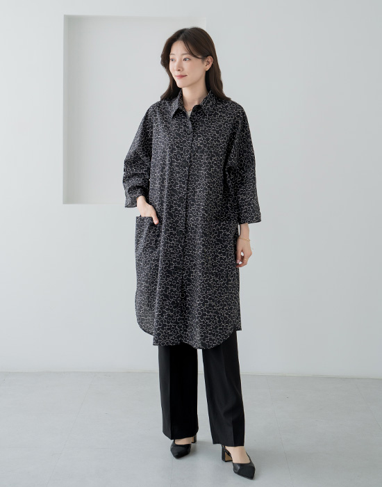 [Classy Madame] Big Flower Long Shirt-BL2604024-