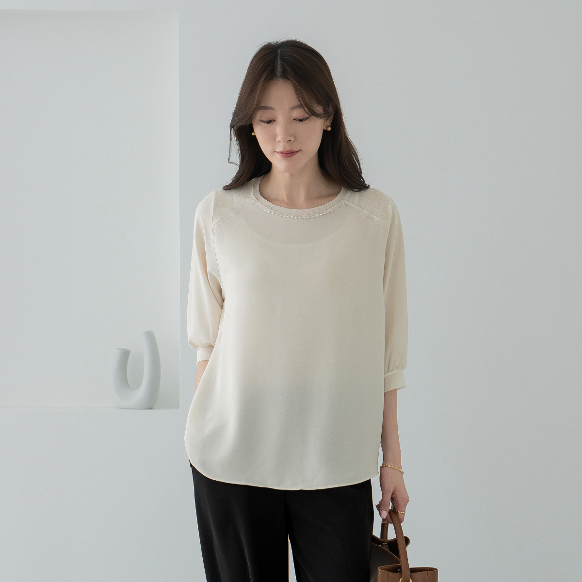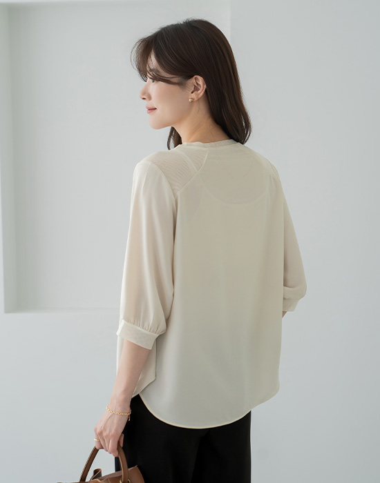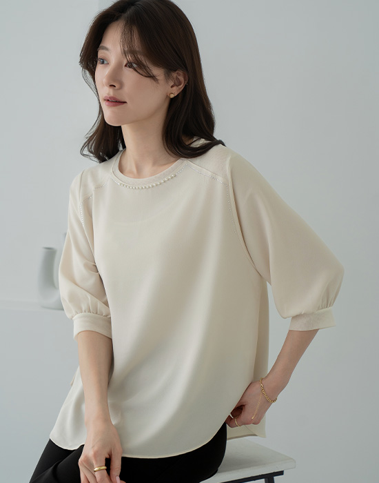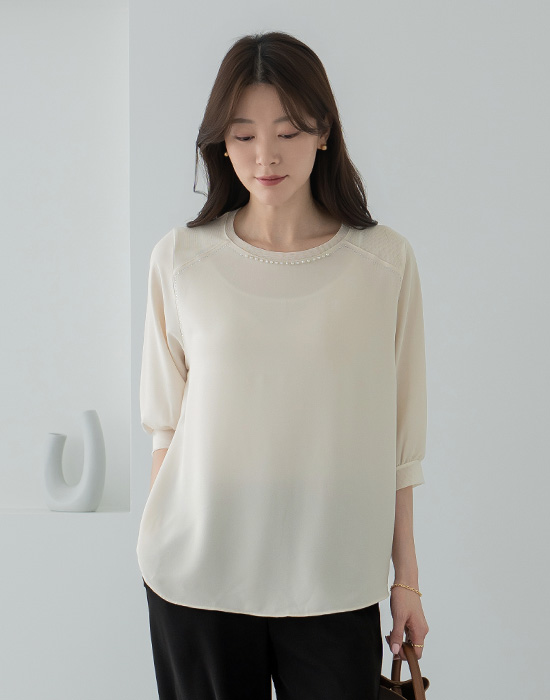 [Classy Madame] Pearl Round Blouse-BL2604025-