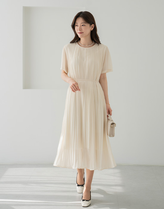 Bobo Strap Pleated Dress-OP2604004-