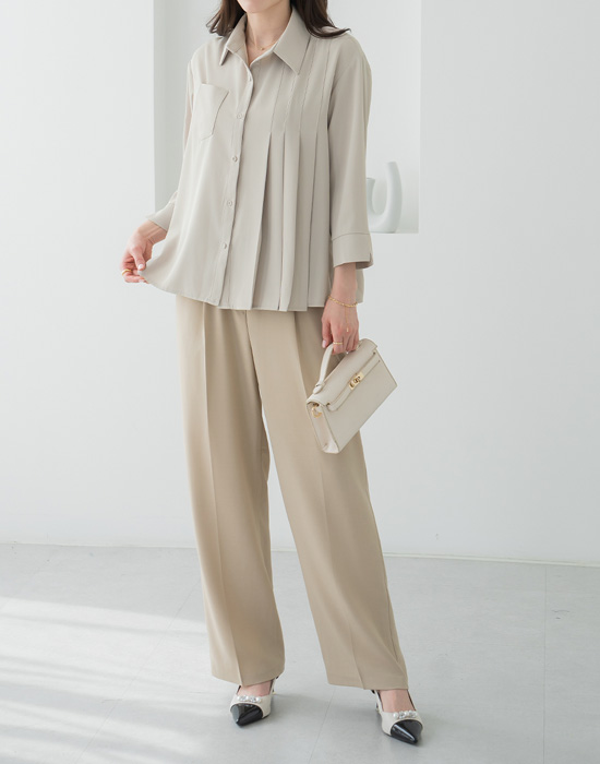 [Classy Madame] Pleated Shirt Blouse-BL2604019-