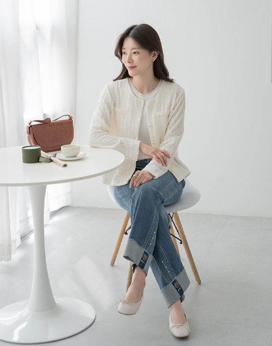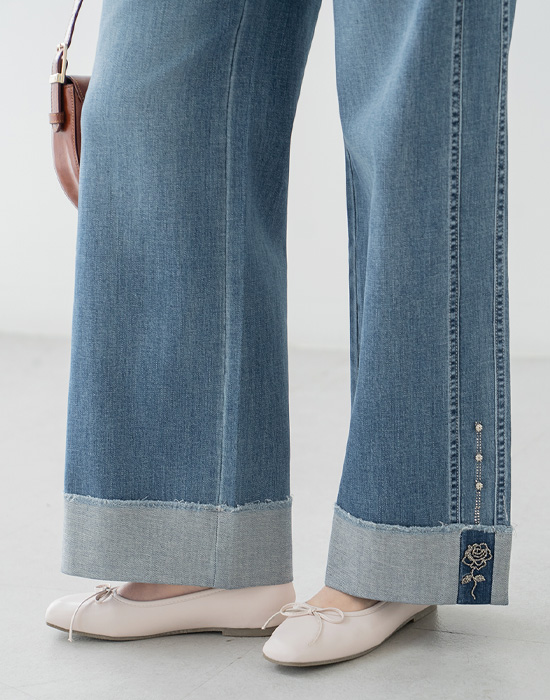 Rose Beads Denim Pants-PN2604021-