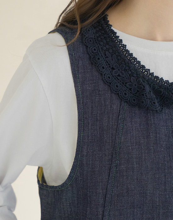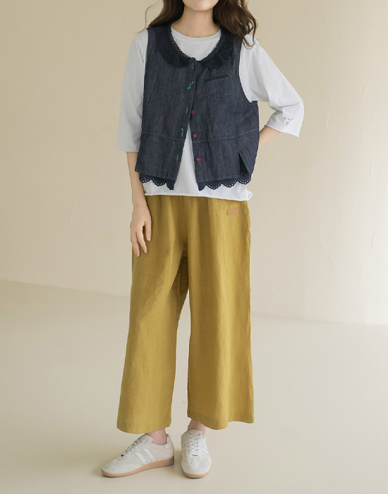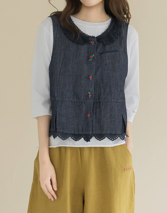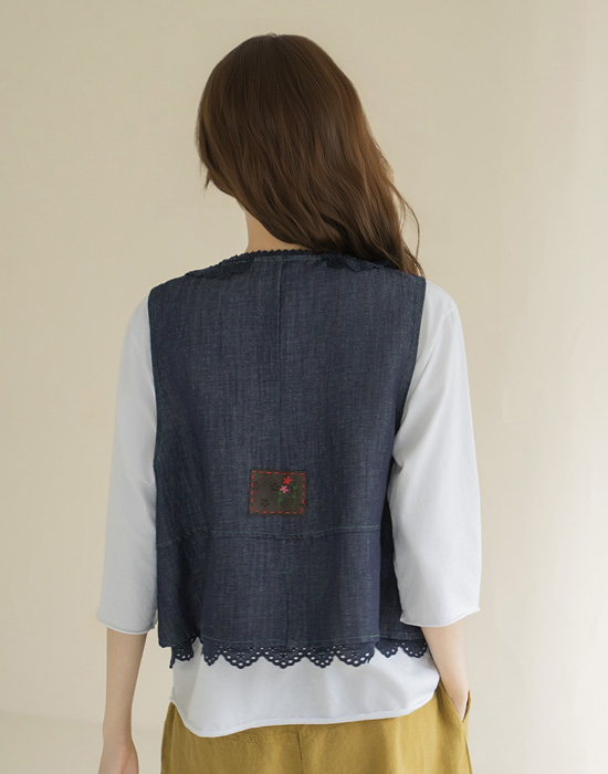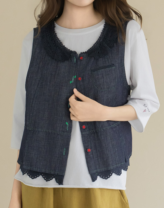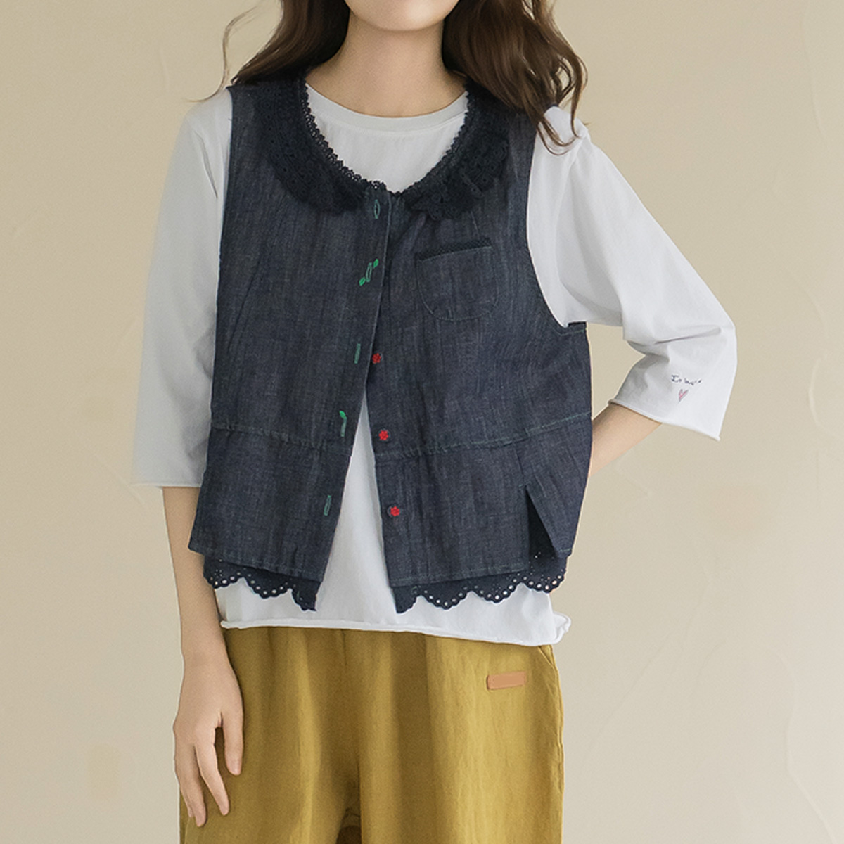 [Natural Poem] Floral Button Denim Linen Vest-VE2604006-