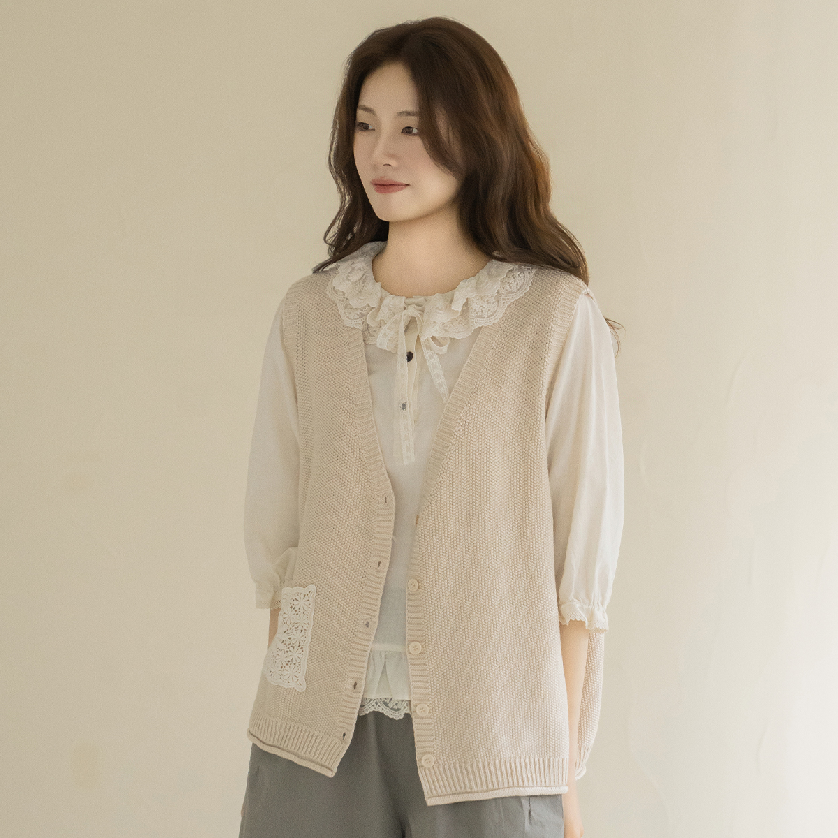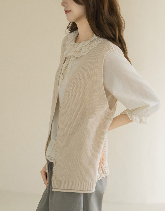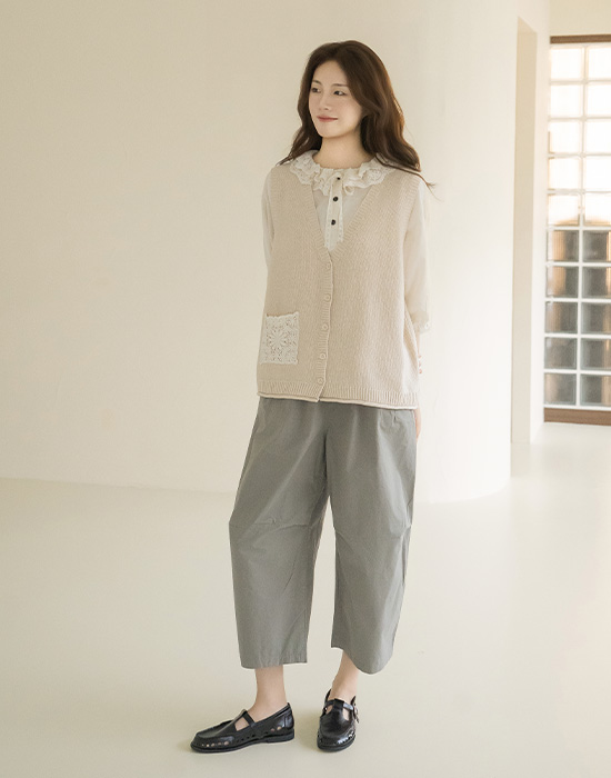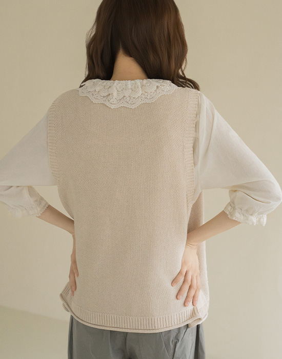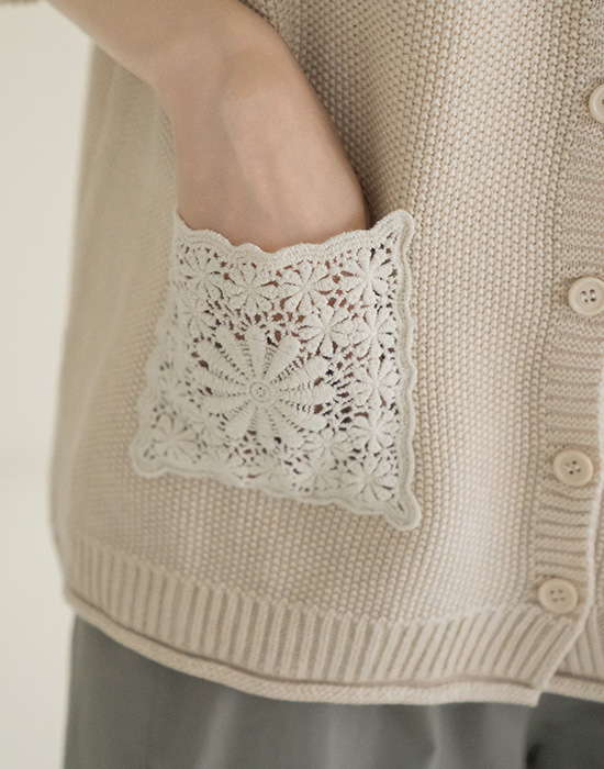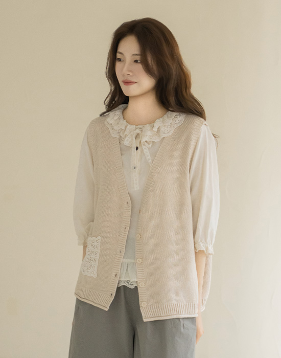 [Natural Poem] Lace Pocket Knit Vest-VE2604007-