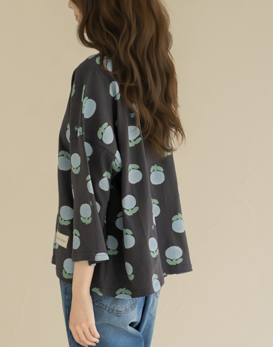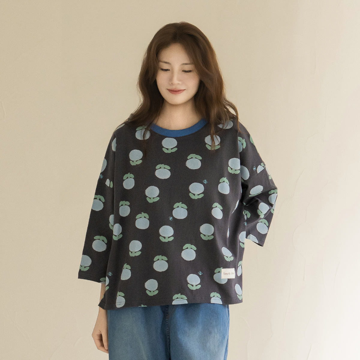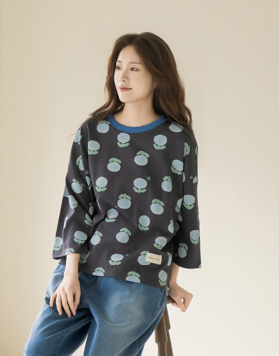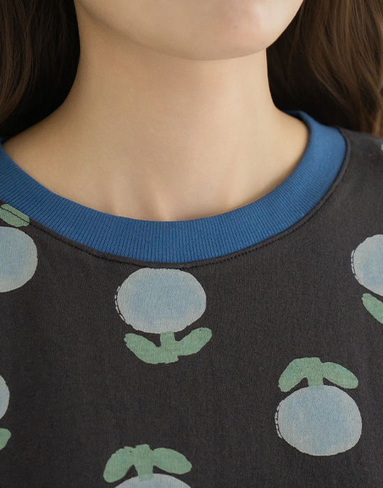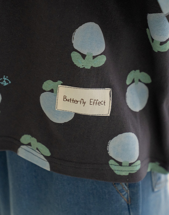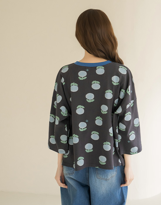 [Natural Poem] Blue Floral Loose Fit T-shirt-TE2604021-