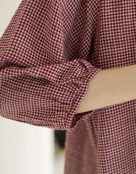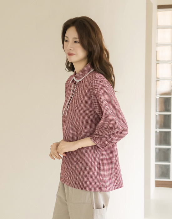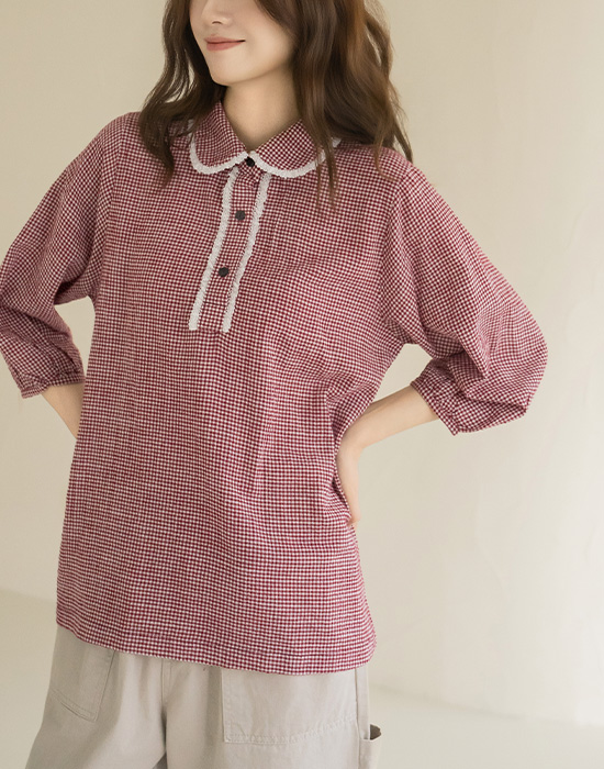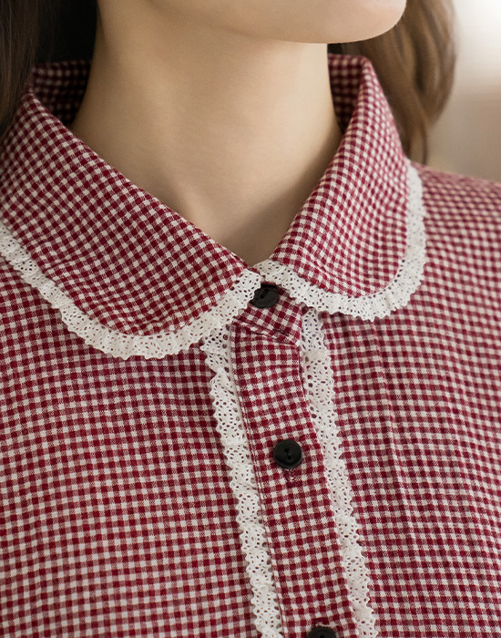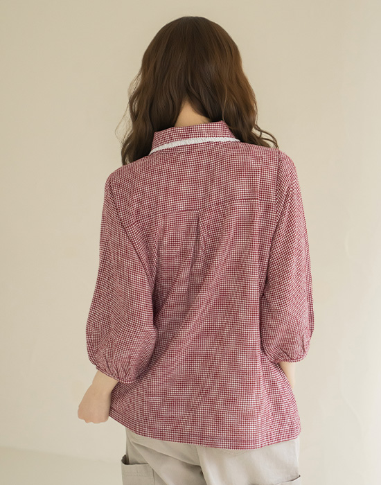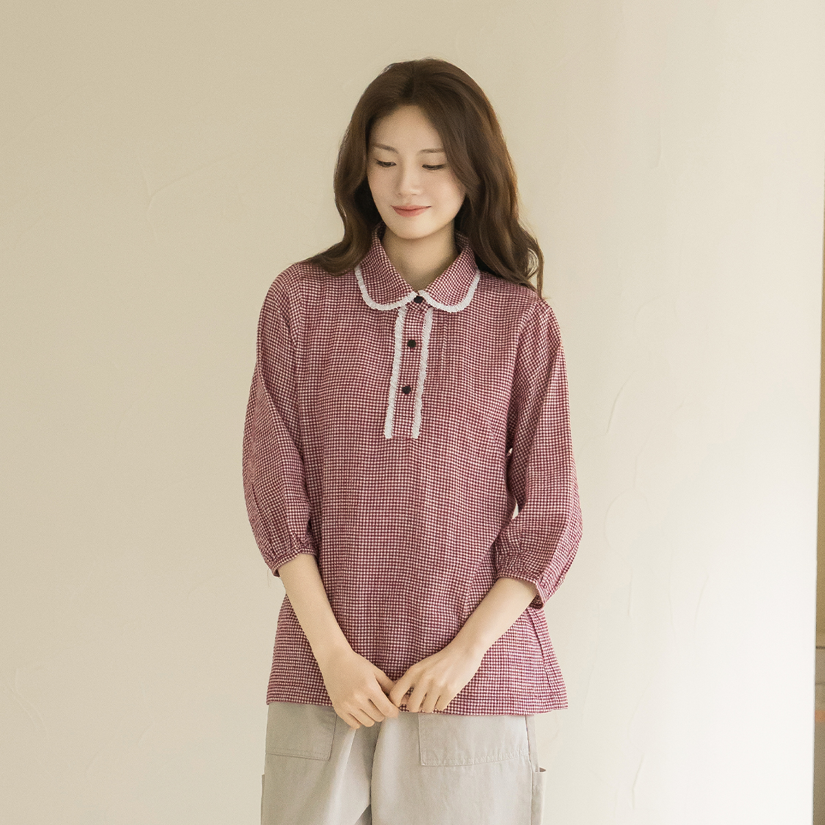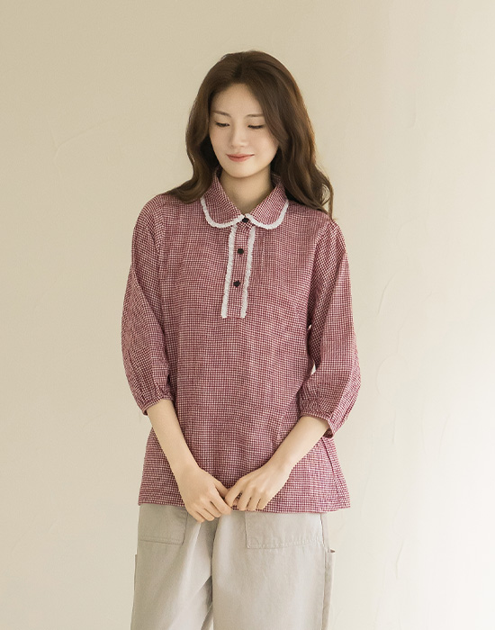 [Natural Poem] Round Collar Check Blouse-BL2604029-