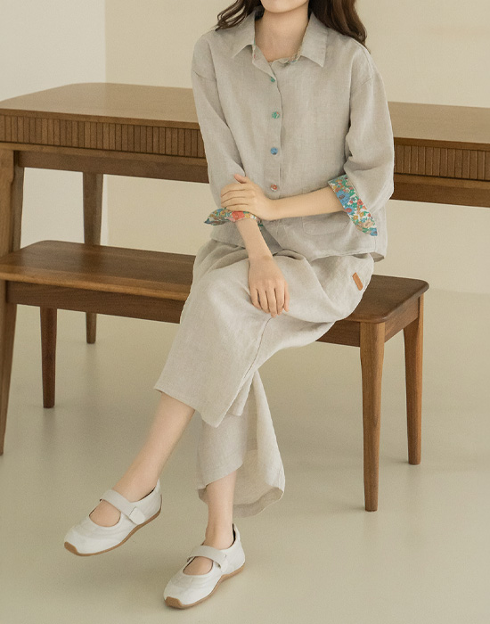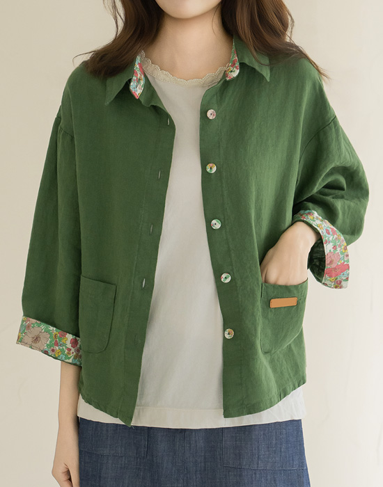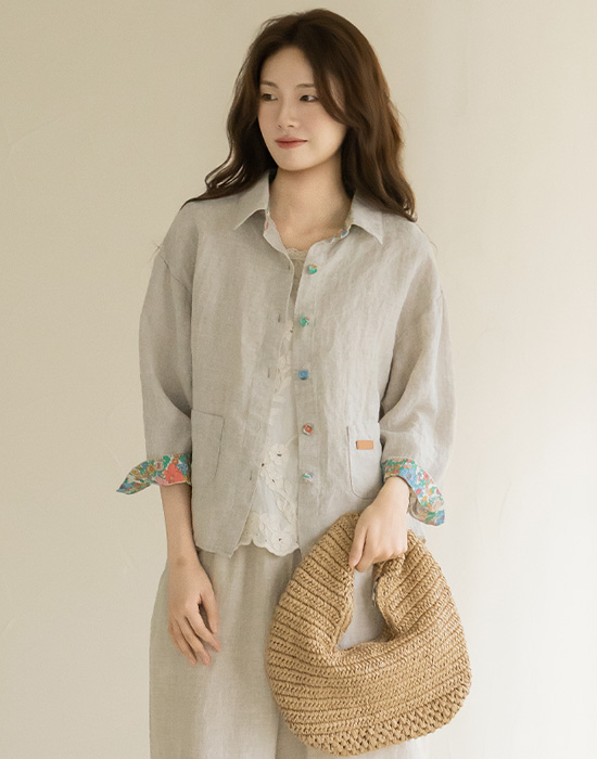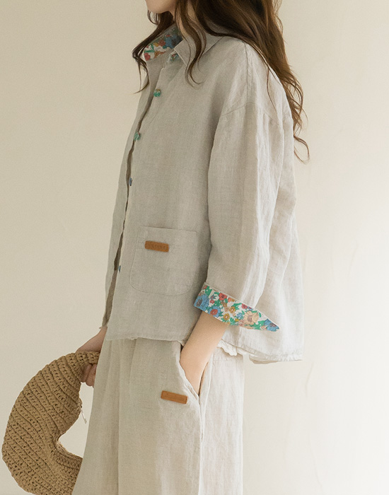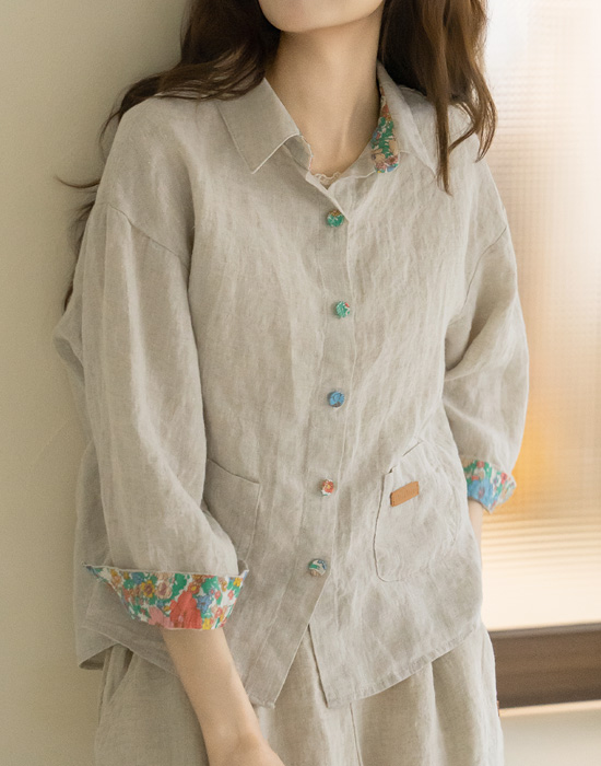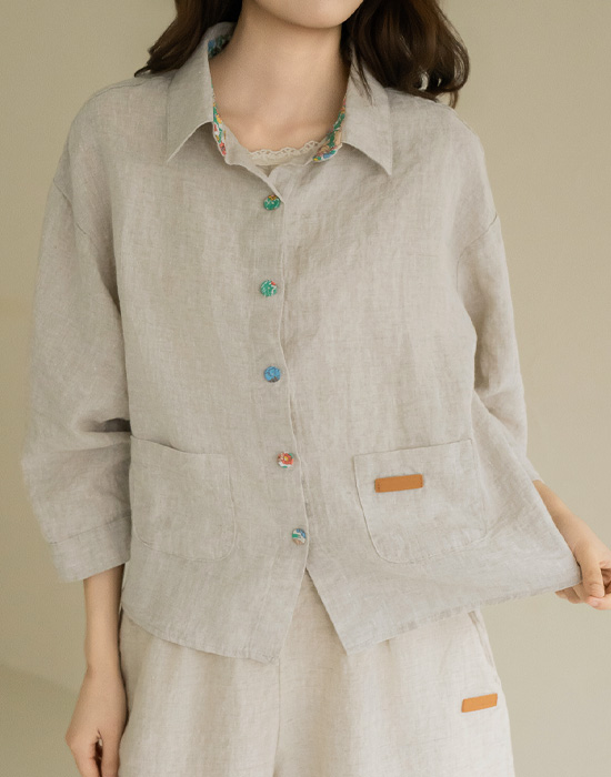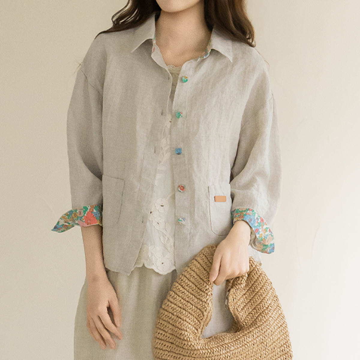[Natural Poem] Collared Linen Shirt Jacket-JK2604006-