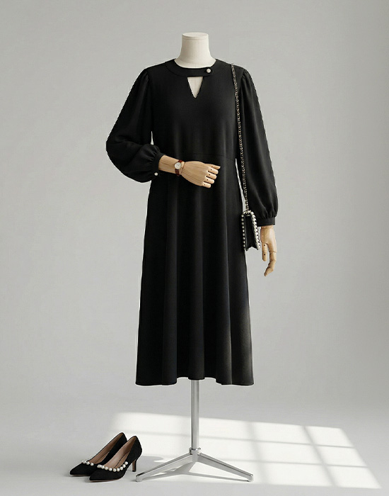 [Risen] Edge Keyhole Flare Dress-LOP2604009-