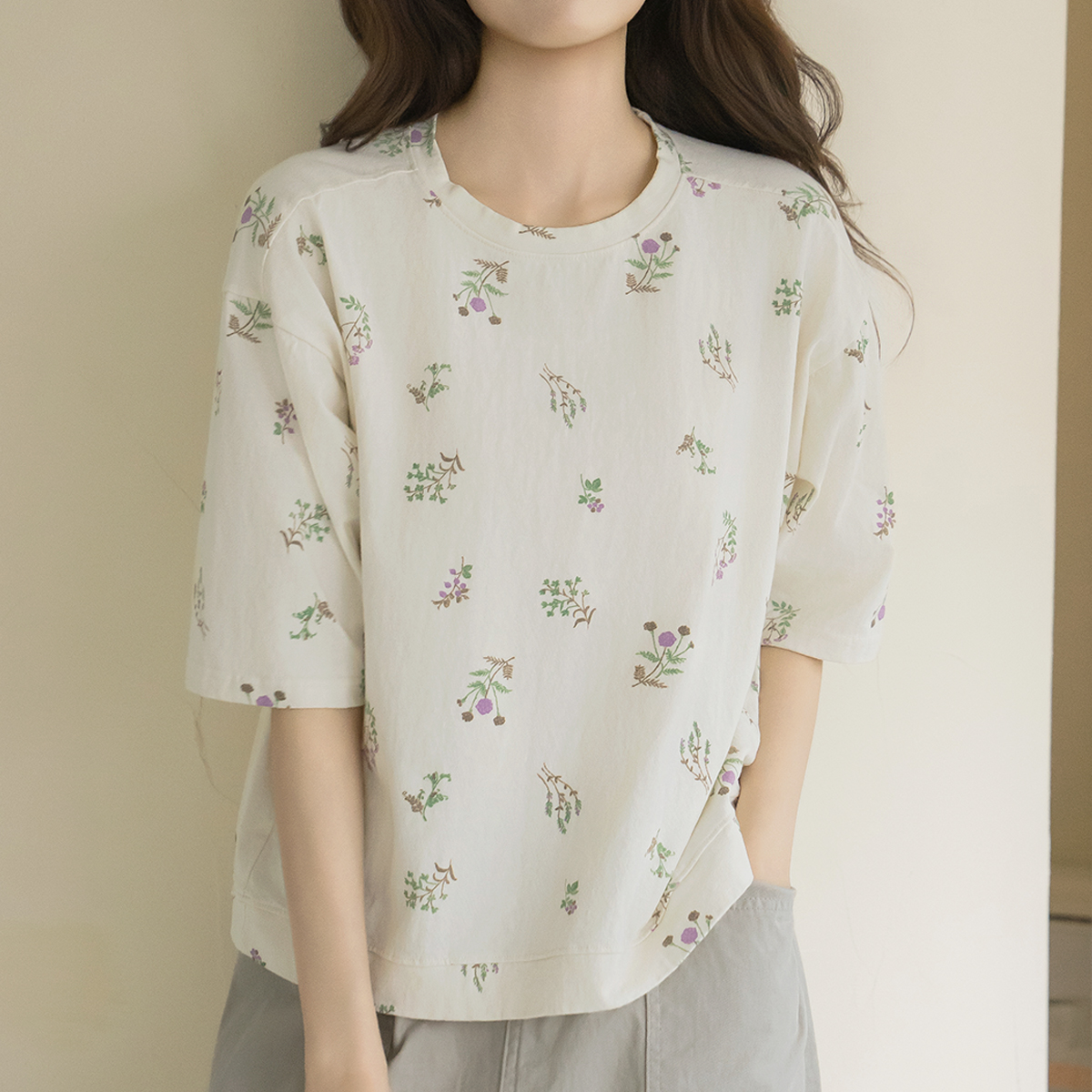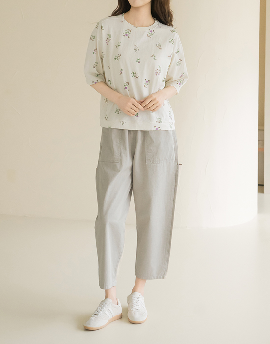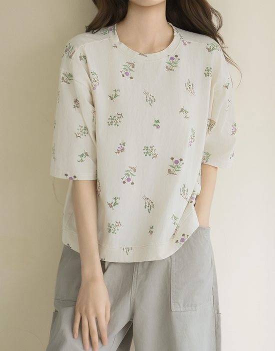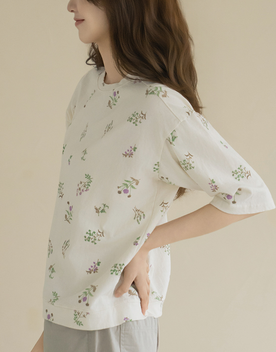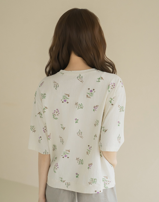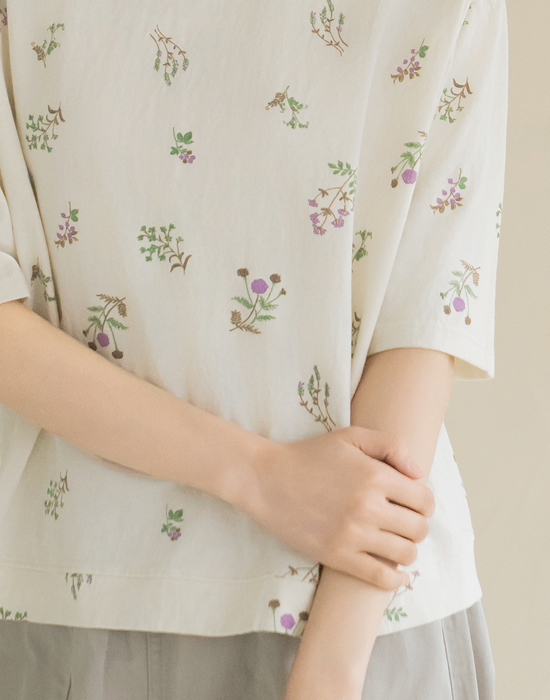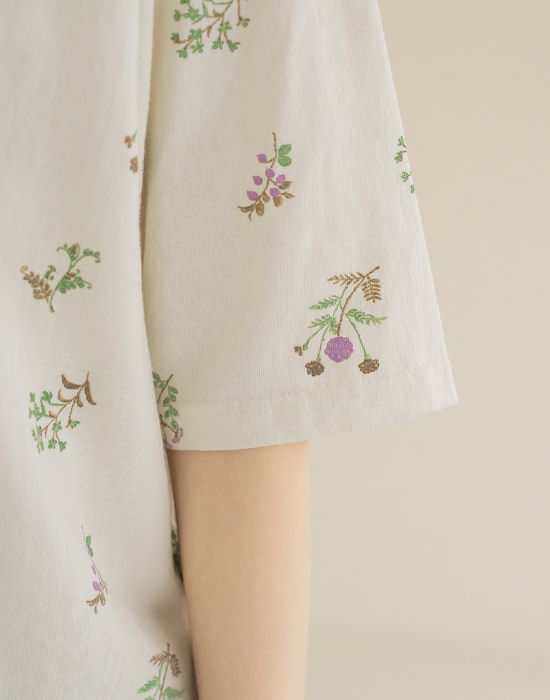 [Natural Poem] Embroidered Floral Print Short Sleeve T-shirt-TE2604022-