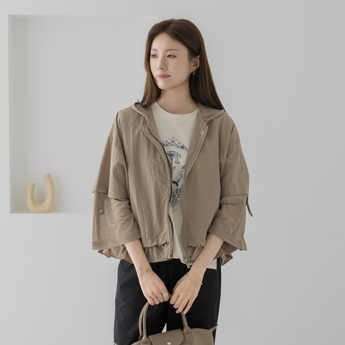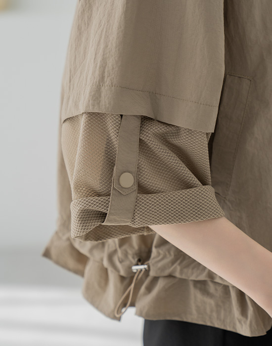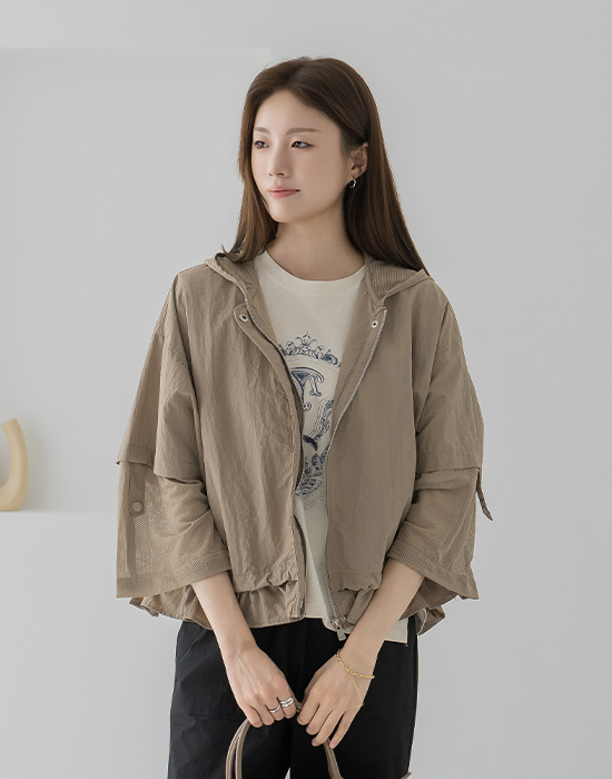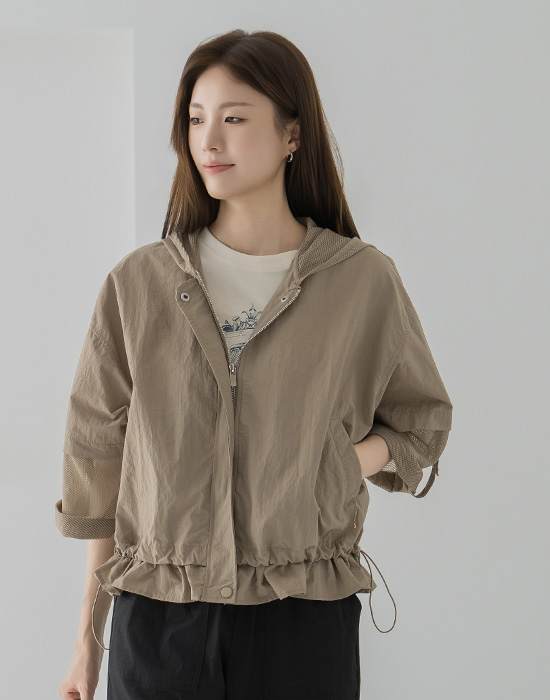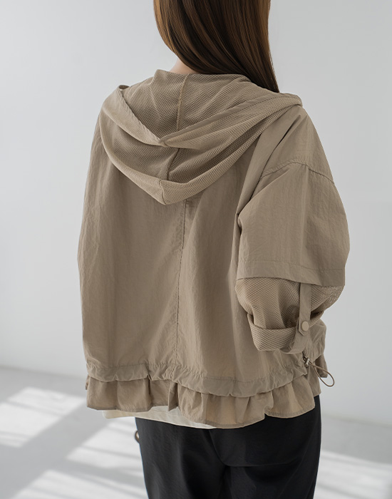 Hooded Mesh Roll-up Jacket-JK2604007-