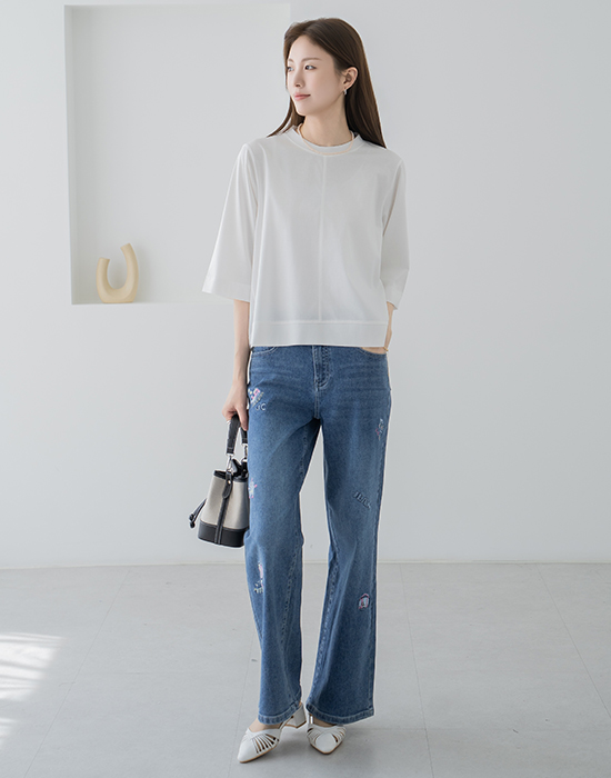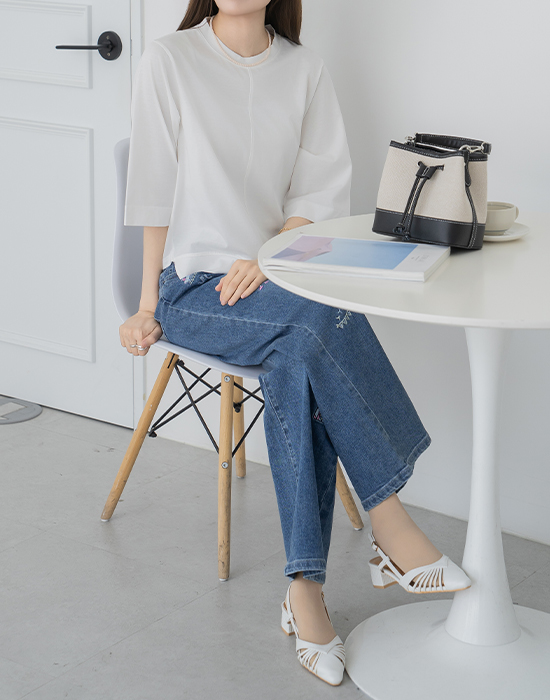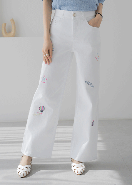 • Embroidered Wide Denim Pants-PN2604027- S(55),M(66),L(77),XL(88)