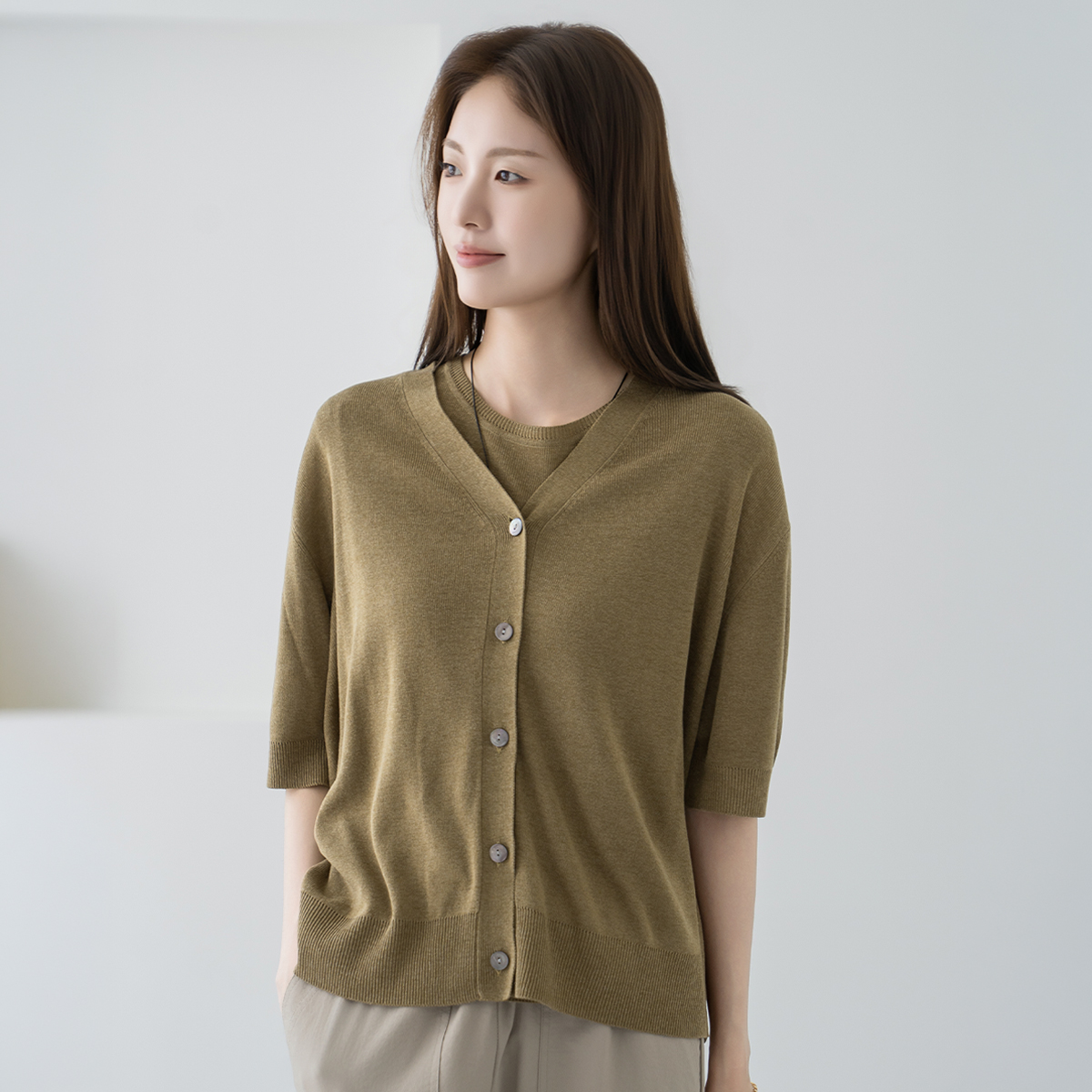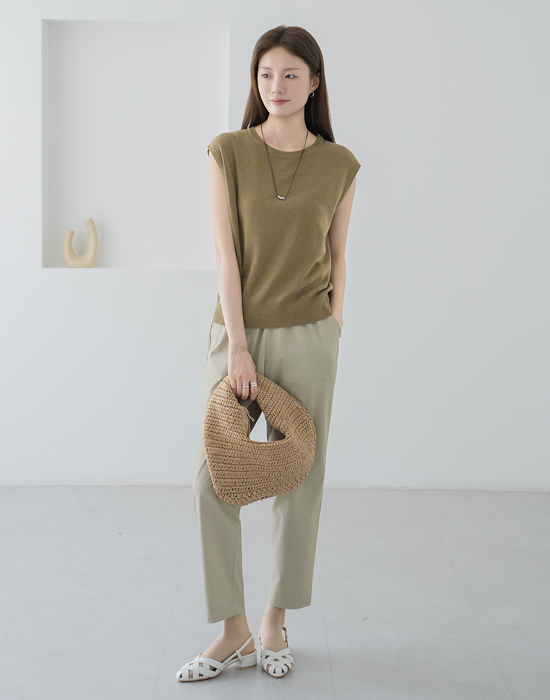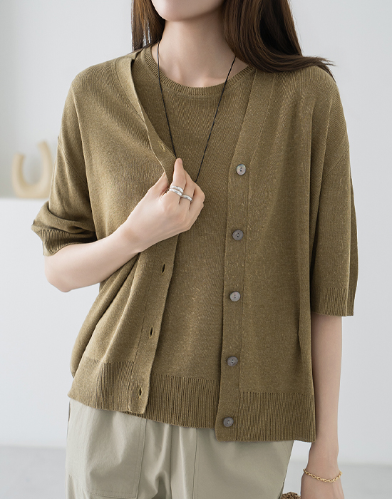 Linen Sleeveless Cardigan Set-SET2604004-