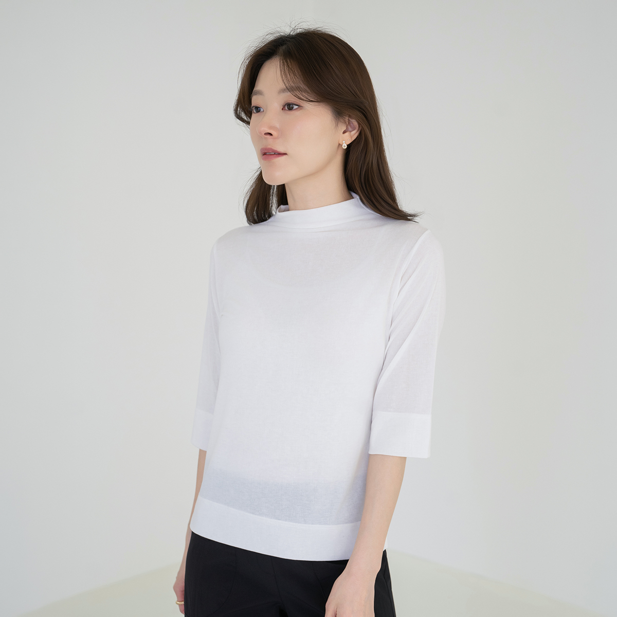 Rayon Mock Turtleneck T-shirt-TE2604045-