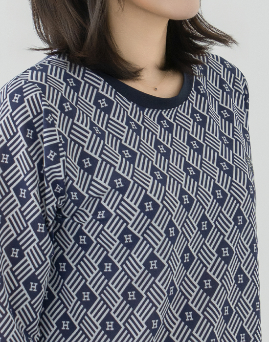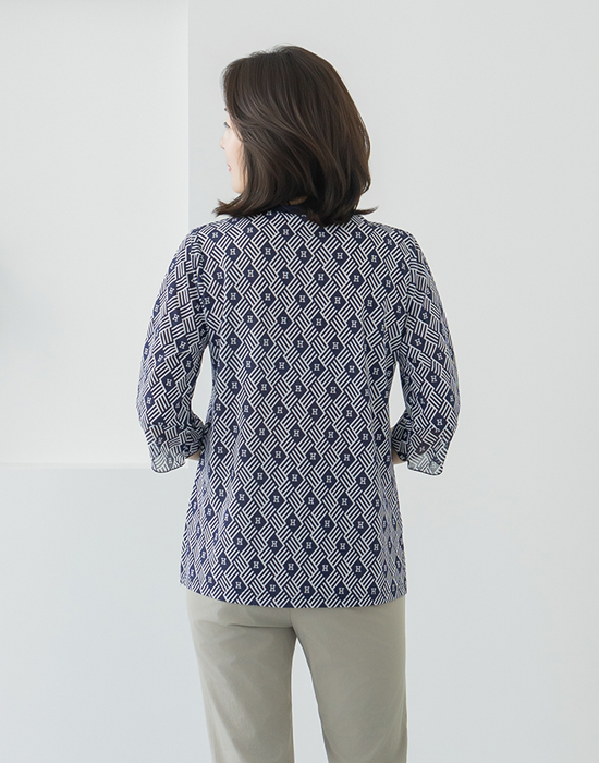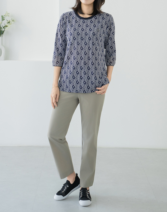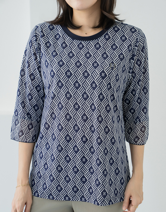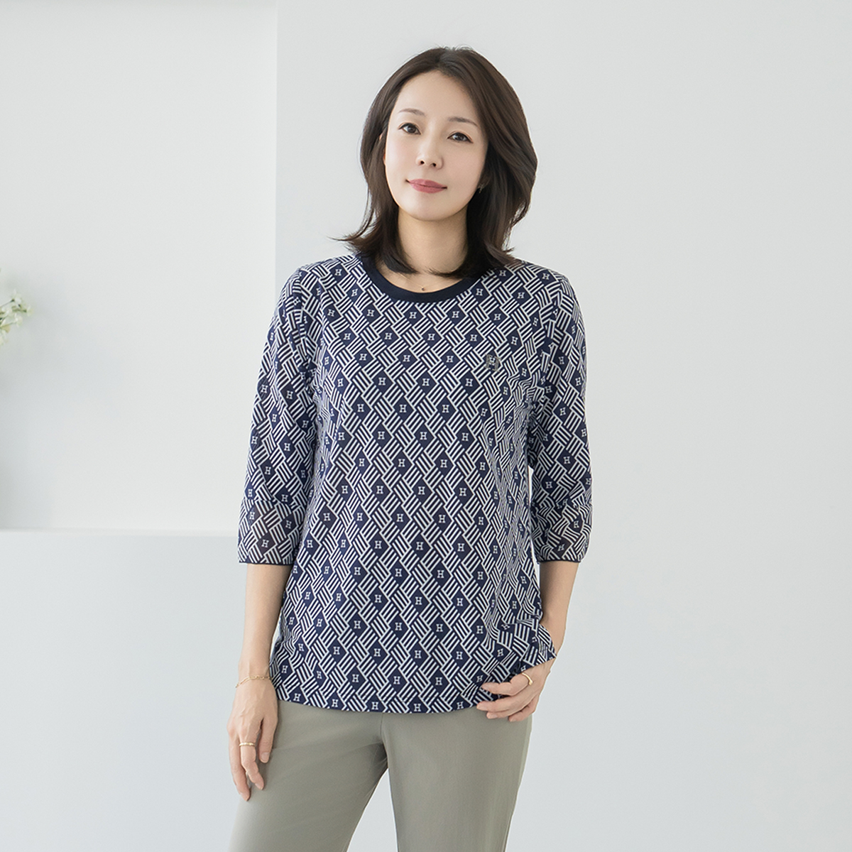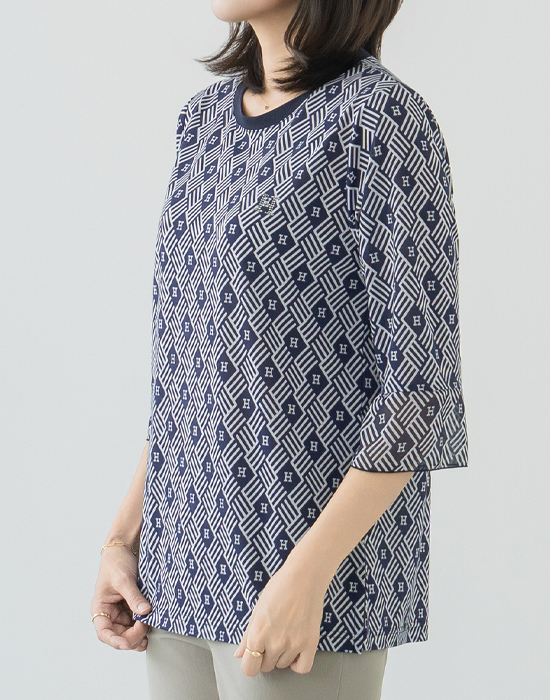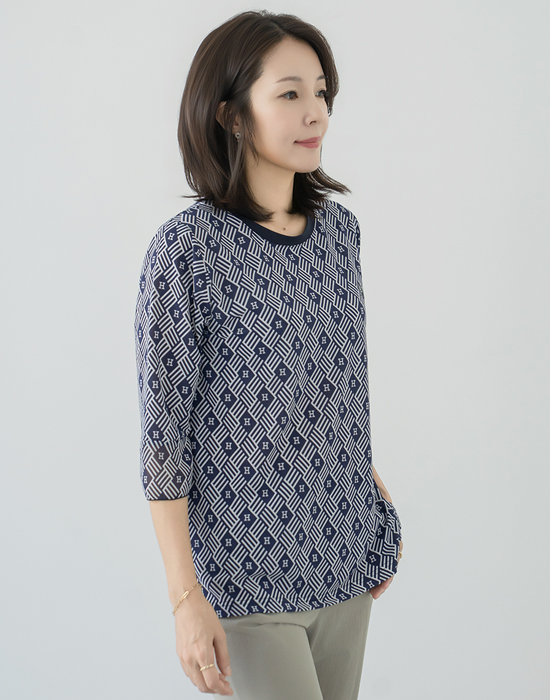 Geometric Pattern 3/4 Sleeve T-shirt-TE2604054-
