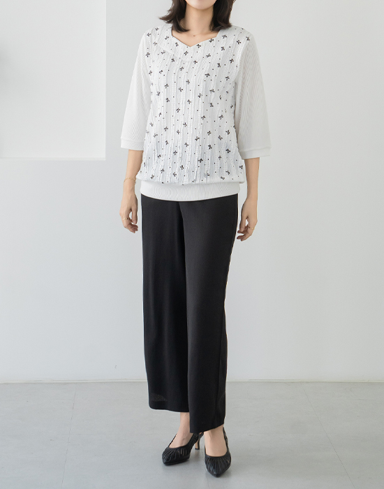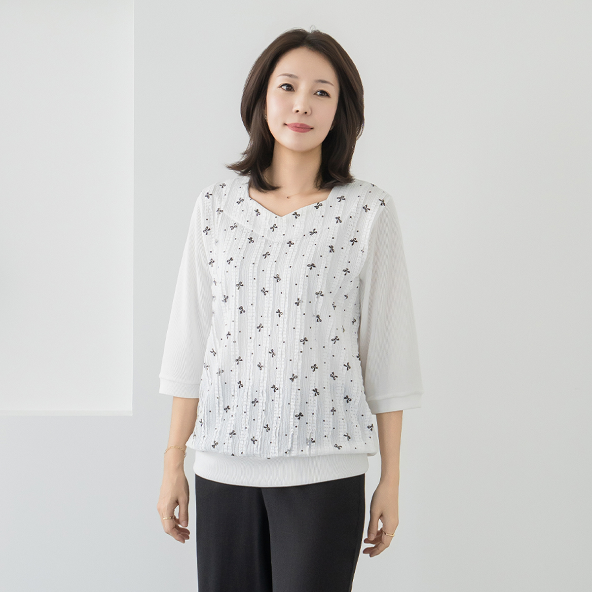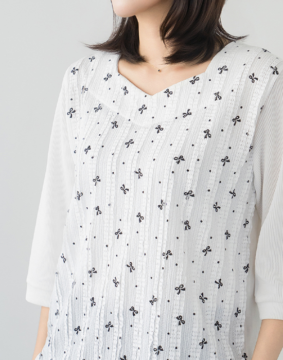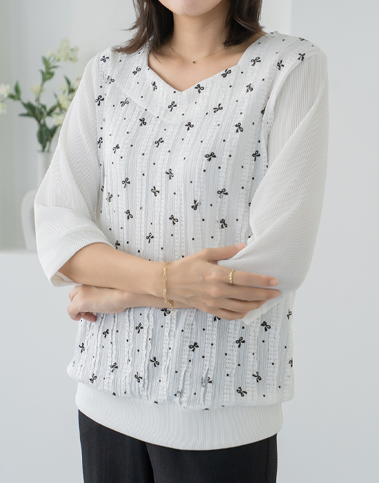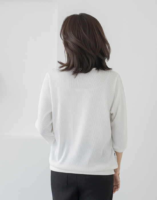Square Neck Ribbon Contrast T-shirt-TE2604058-