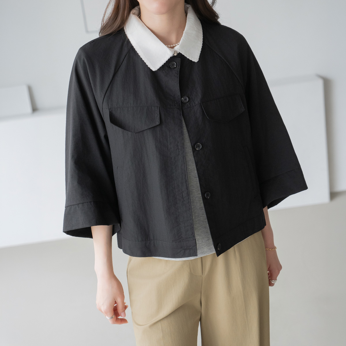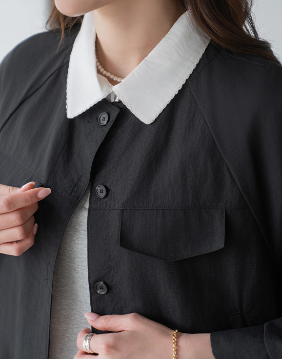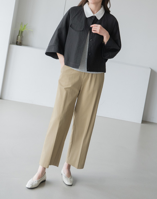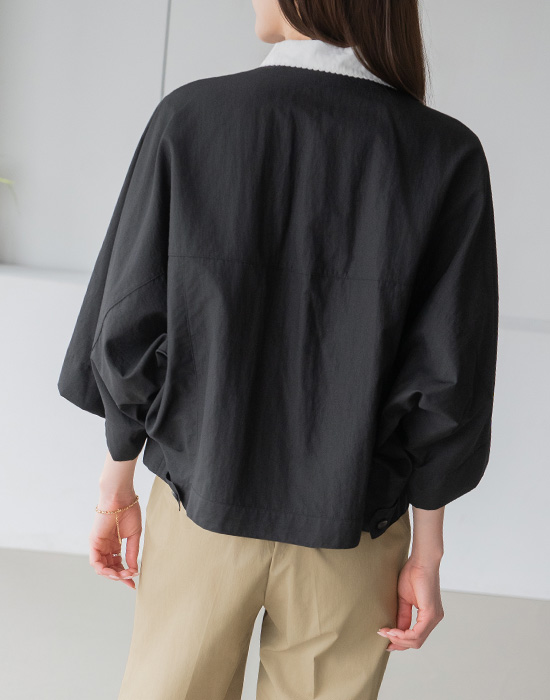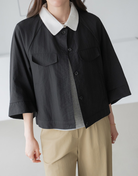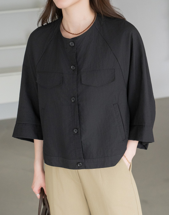 [Modern Basic] Collarless Button Nylon Jacket-JK2604017-