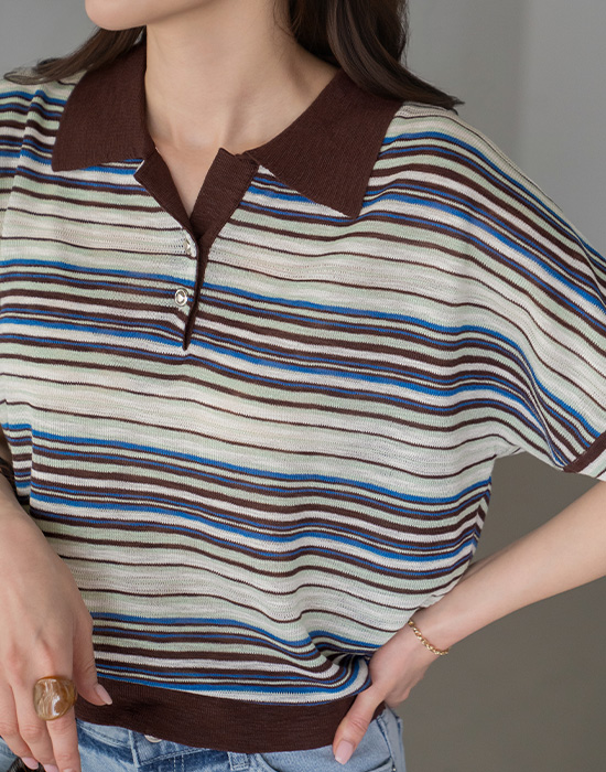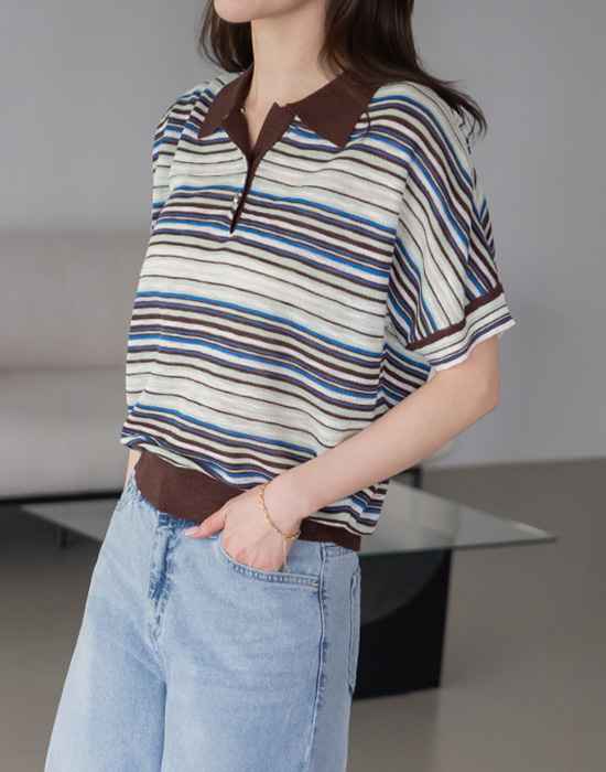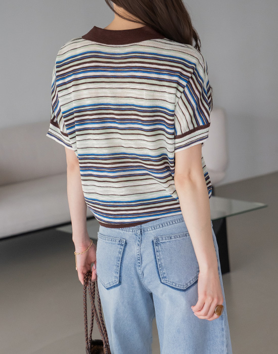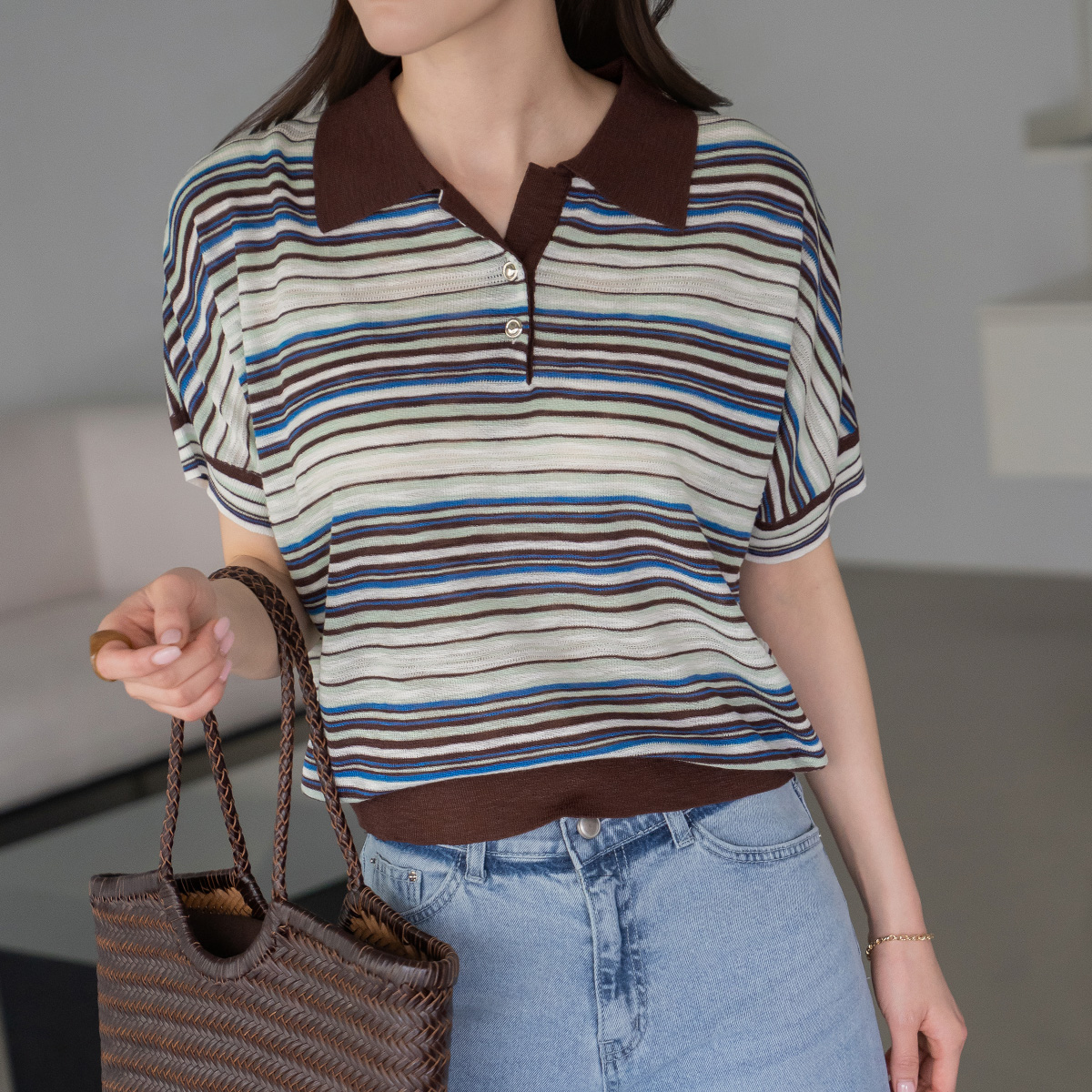 [Modern Basic] Colorful Knit Collared T-shirt-TE2604062-