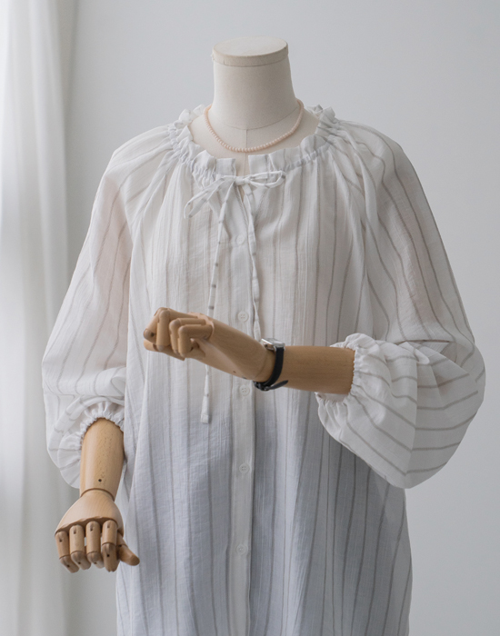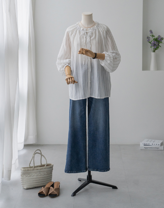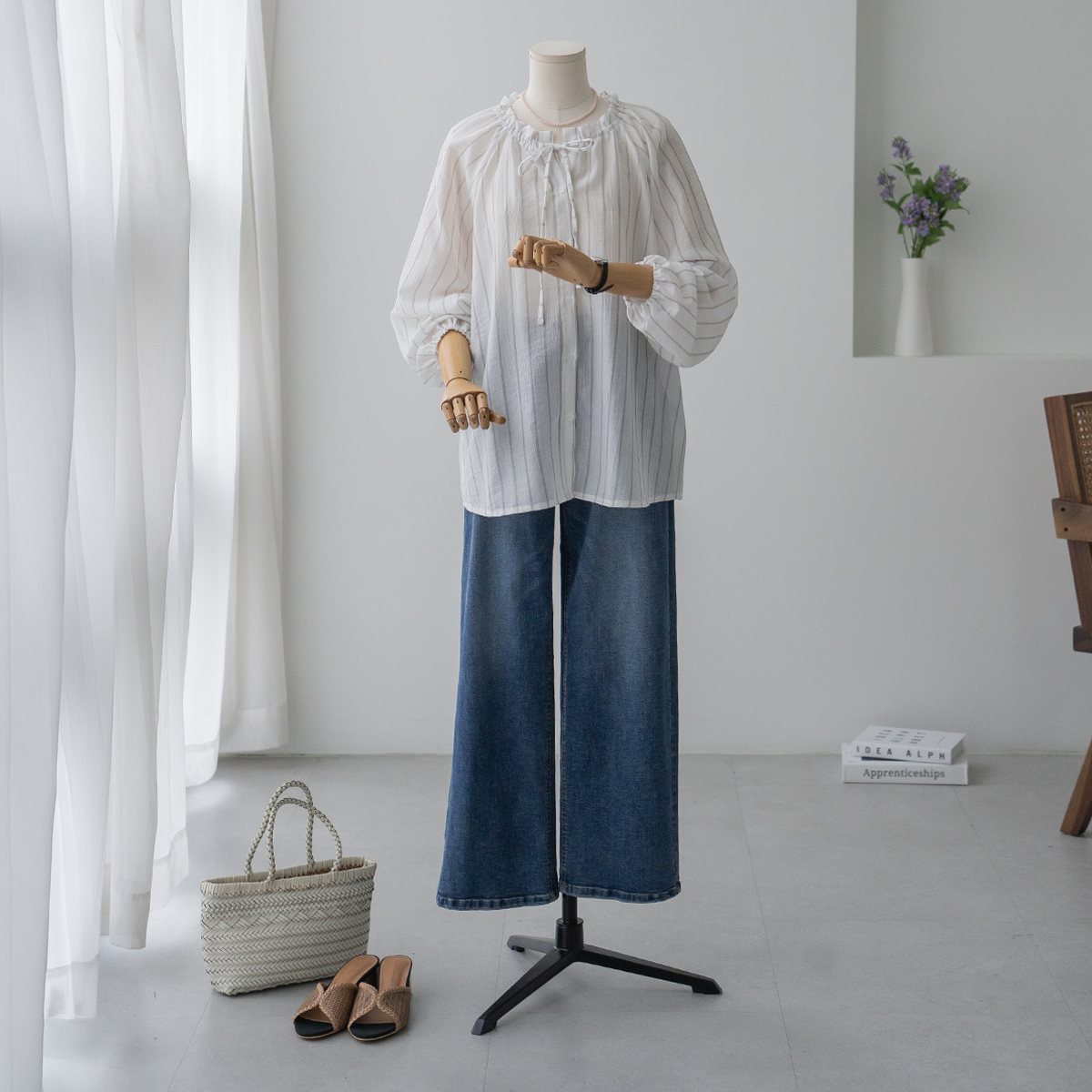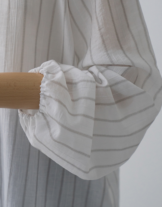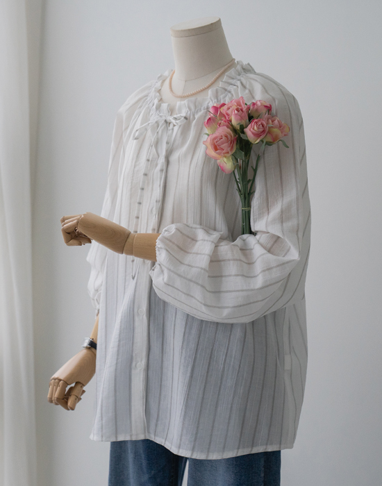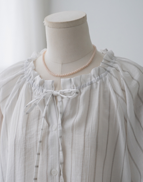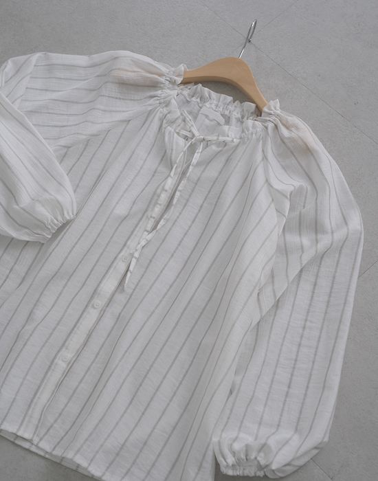 [Risen] Striped Shirring Blouse-LBL2604073-