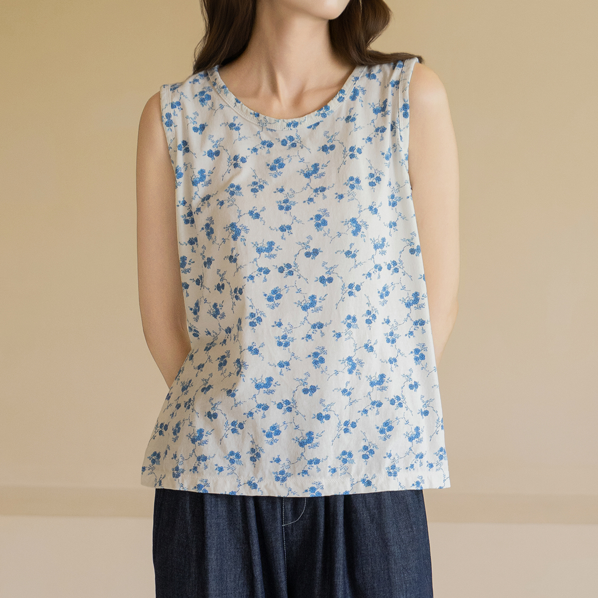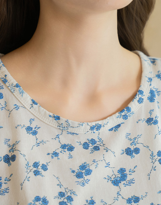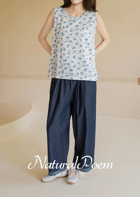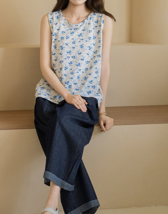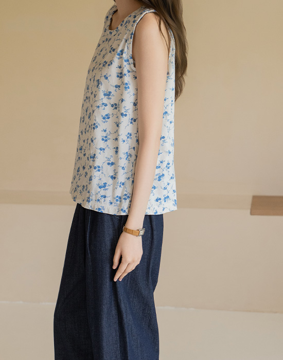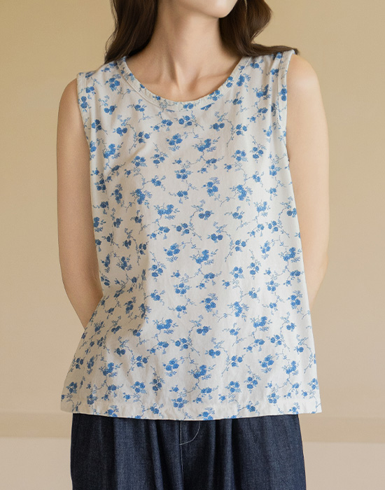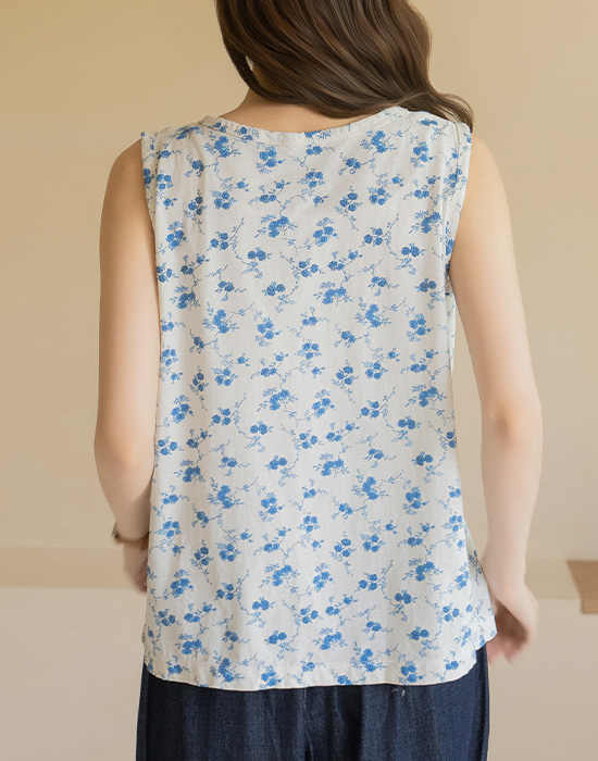 [Natural Poem] Blue Floral Cotton Sleeveless-SL2604007-
