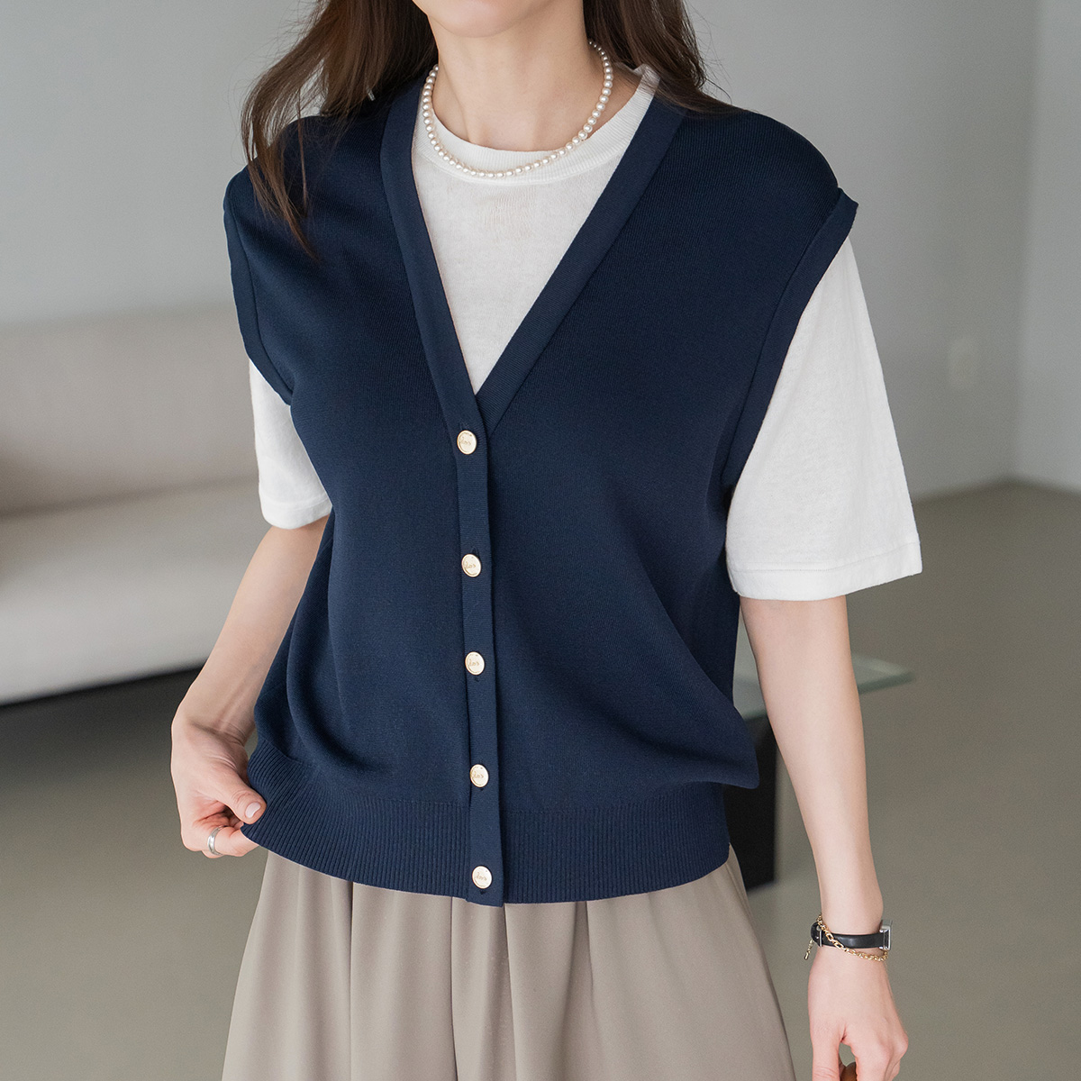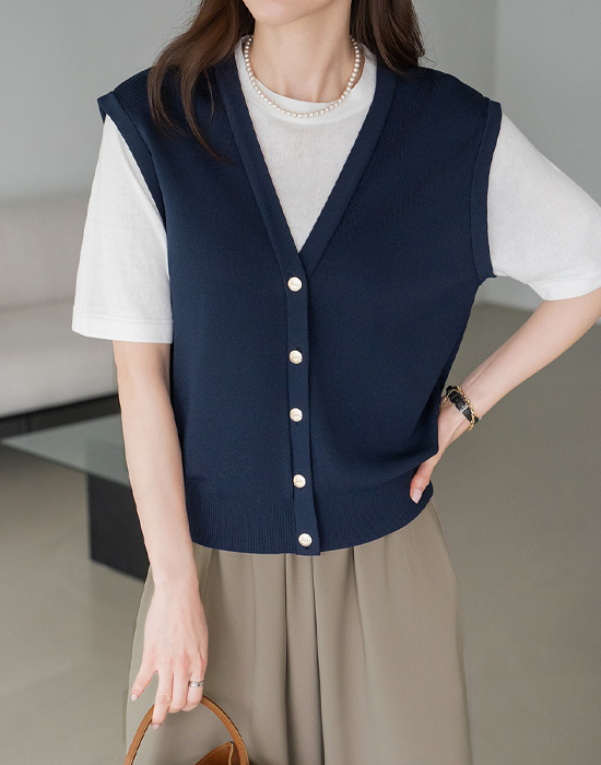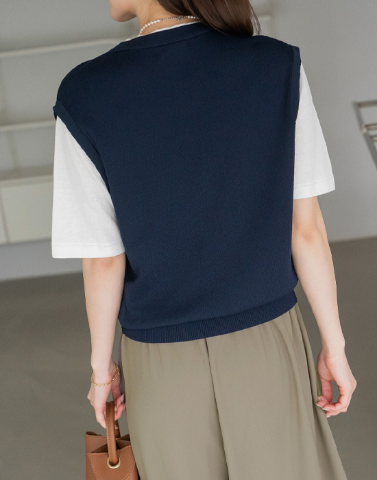 [Modern Basic] Non-open Layered Knit T-shirt-TE2604063-