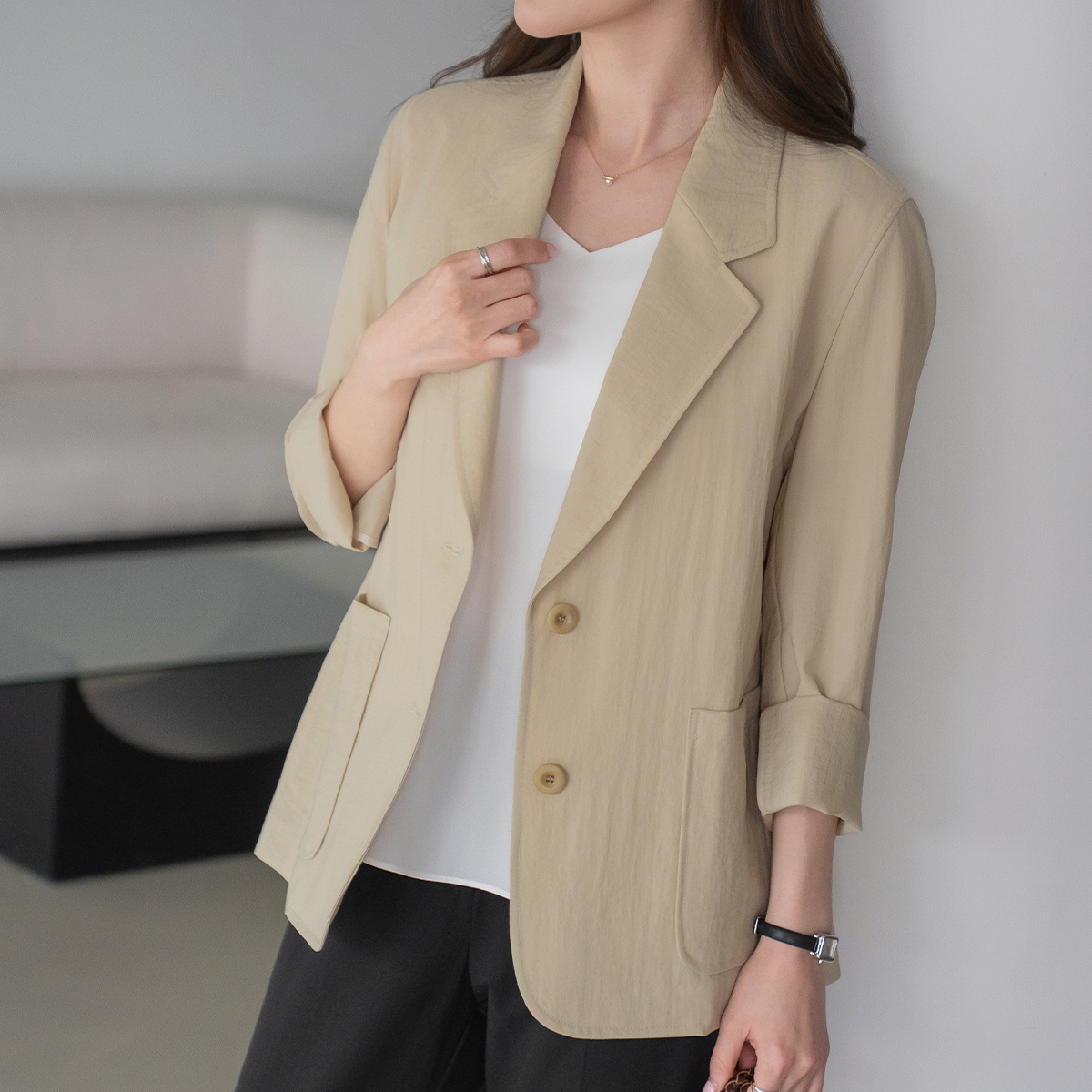 [Modern Basic] Light Pocket Two-Button Jacket-JK2604019-