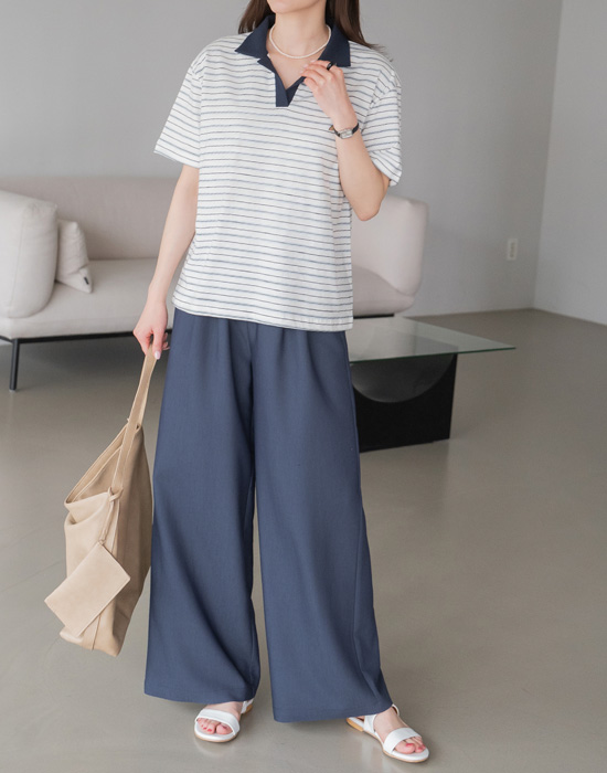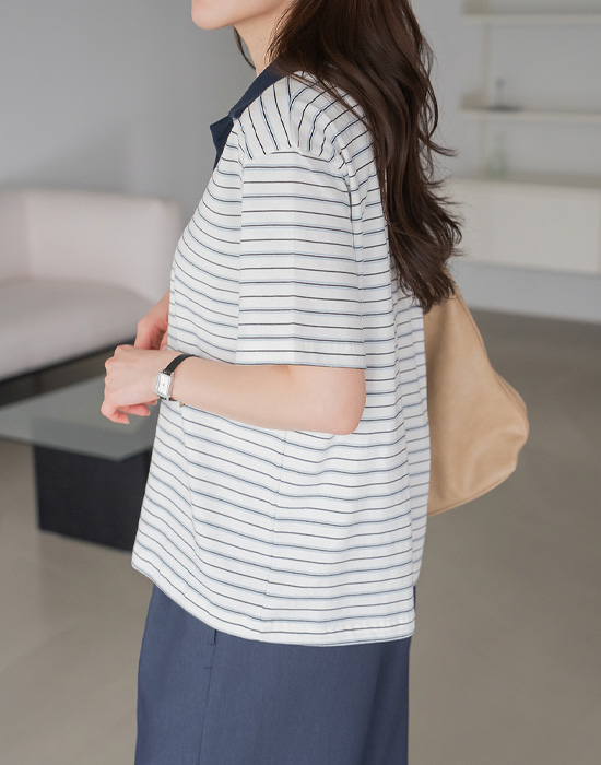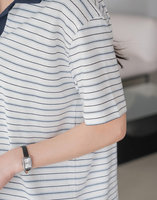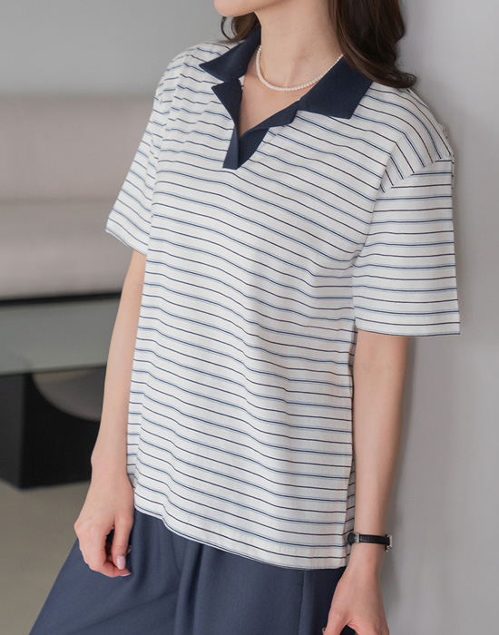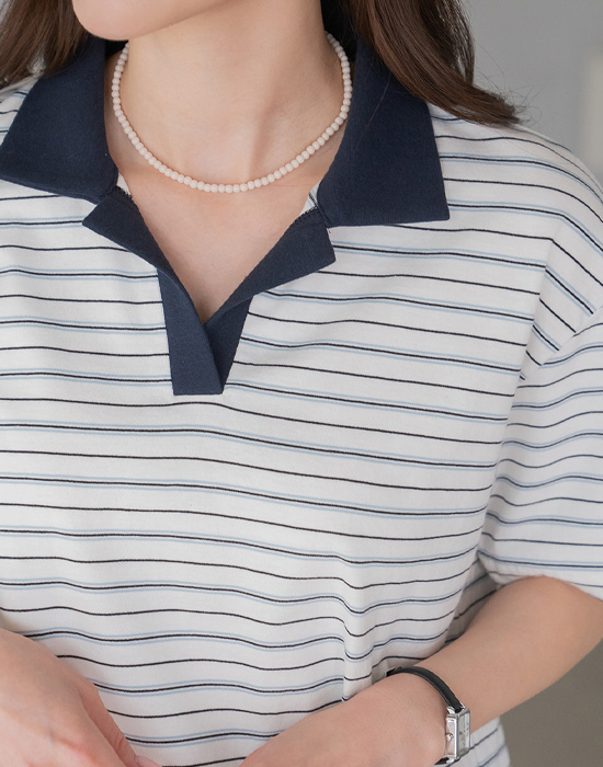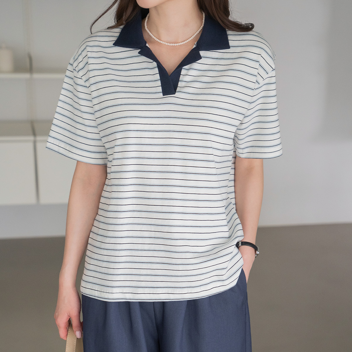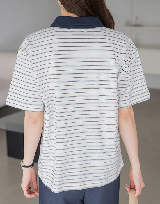[Modern Basic] Striped Collared T-shirt-TE2604065-