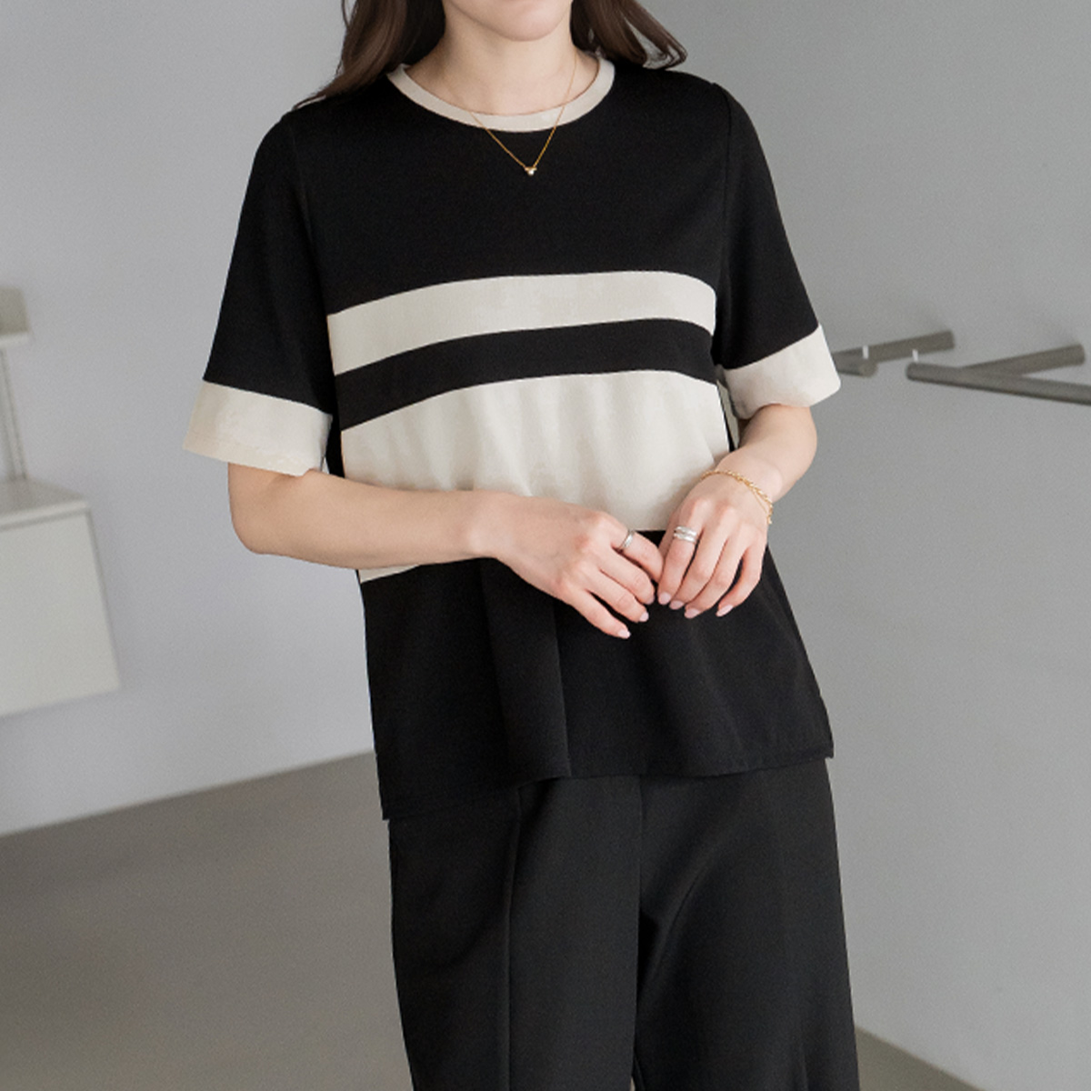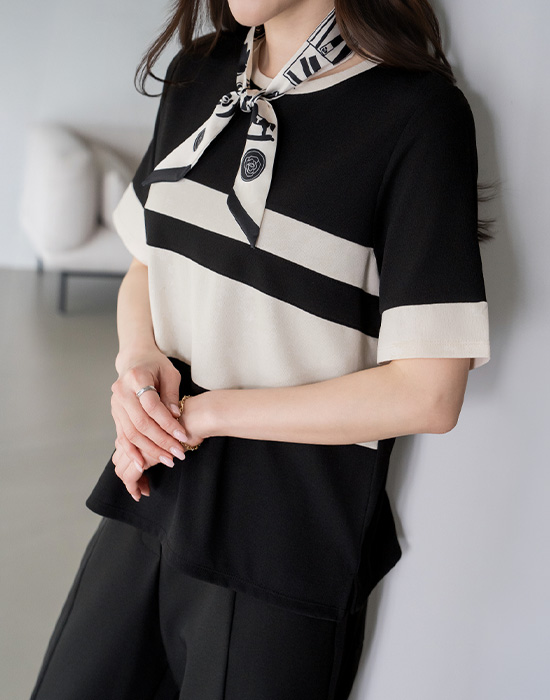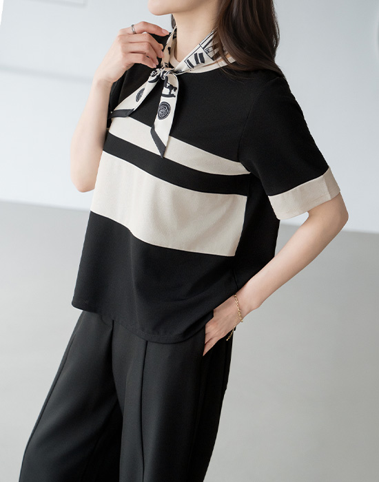 [Modern Basic] Color Mix Spandex T-shirt-TE2604060-