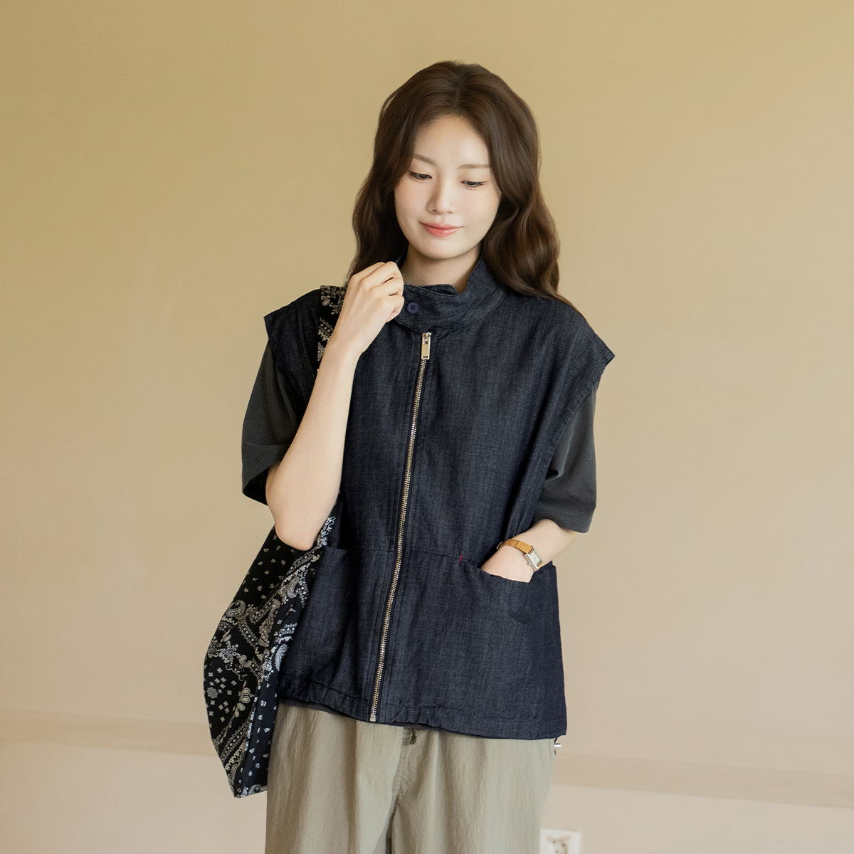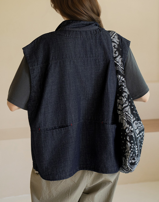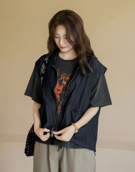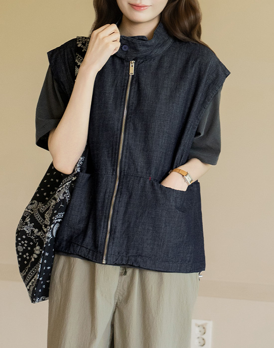 [Natural Poem] Denim Zip-Up Vest-VE2604015-