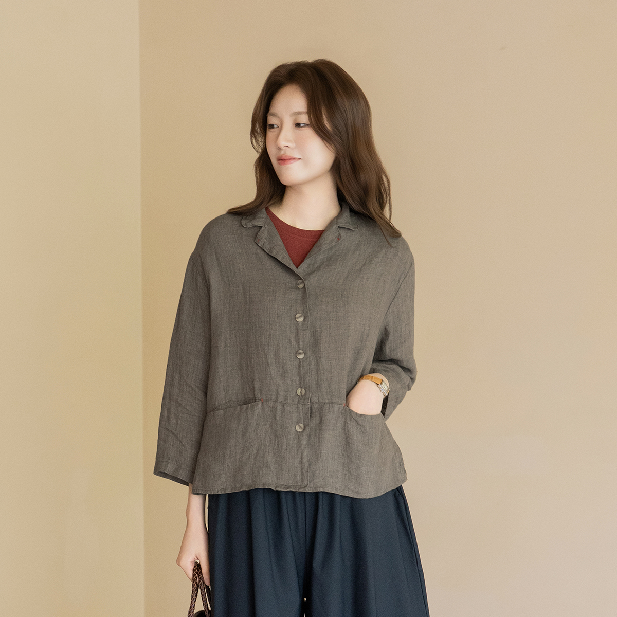 [Natural Poem] Natural Linen Plain Jacket-JK2604027-