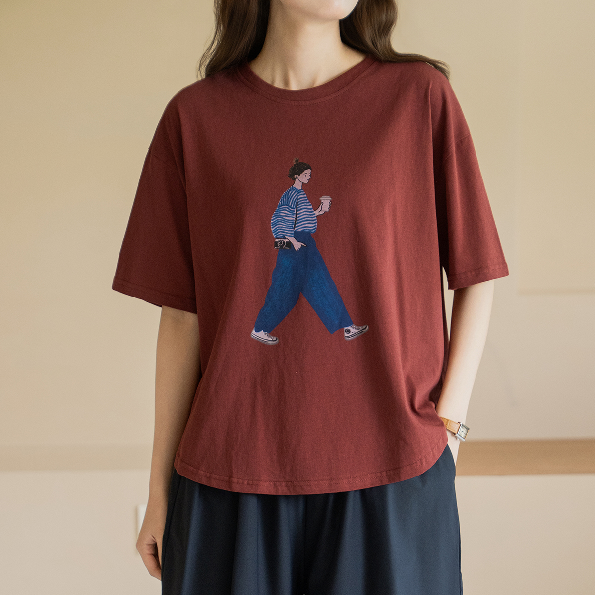 [Natural Poem] Girl Print Short Sleeve T-shirt-TE2604085-