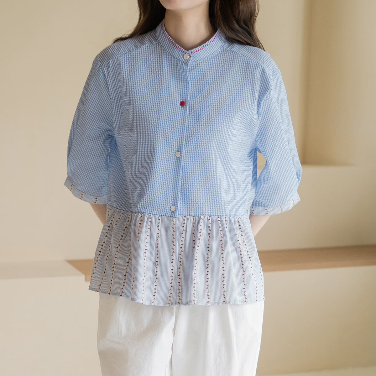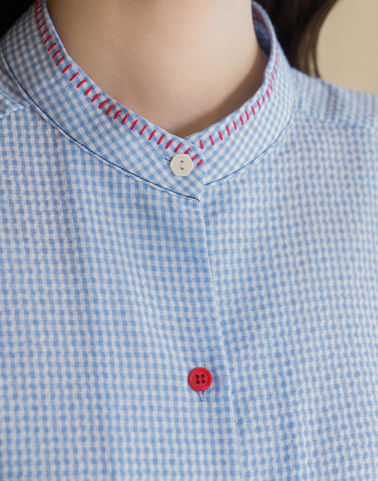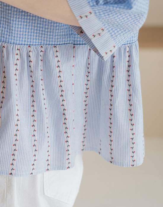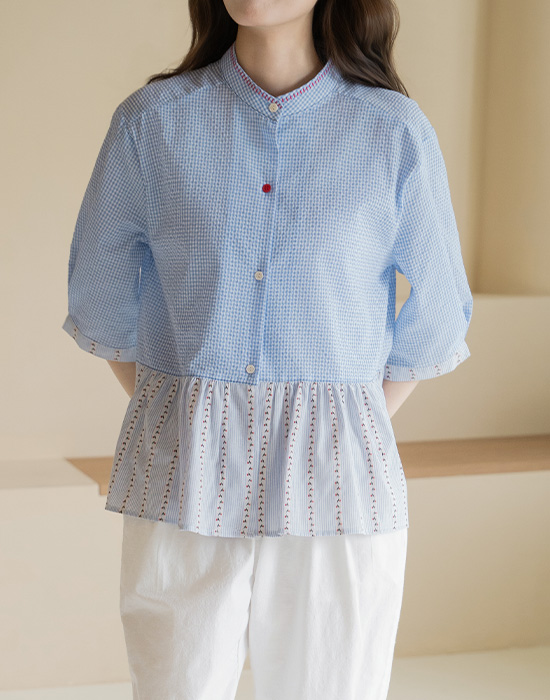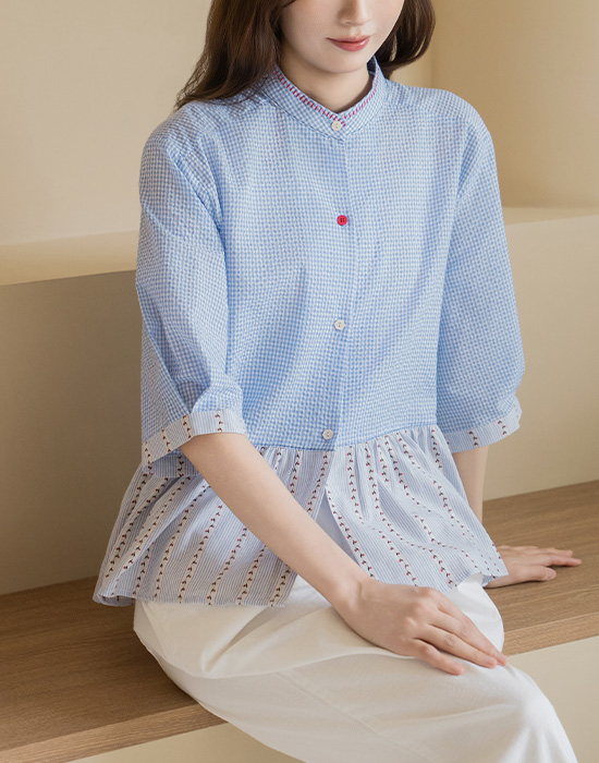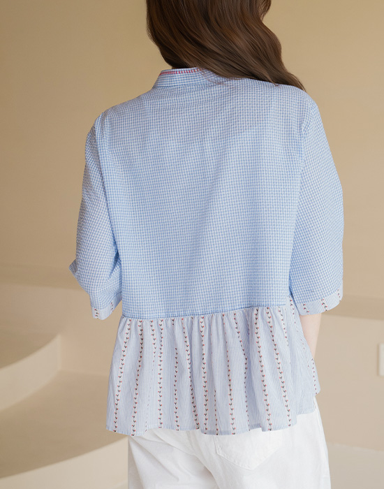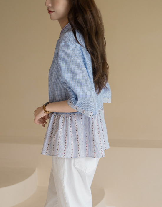 [Natural Poem] Gingham Check Mix Blouse-BL2604077-