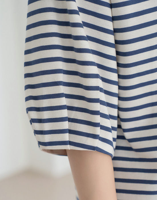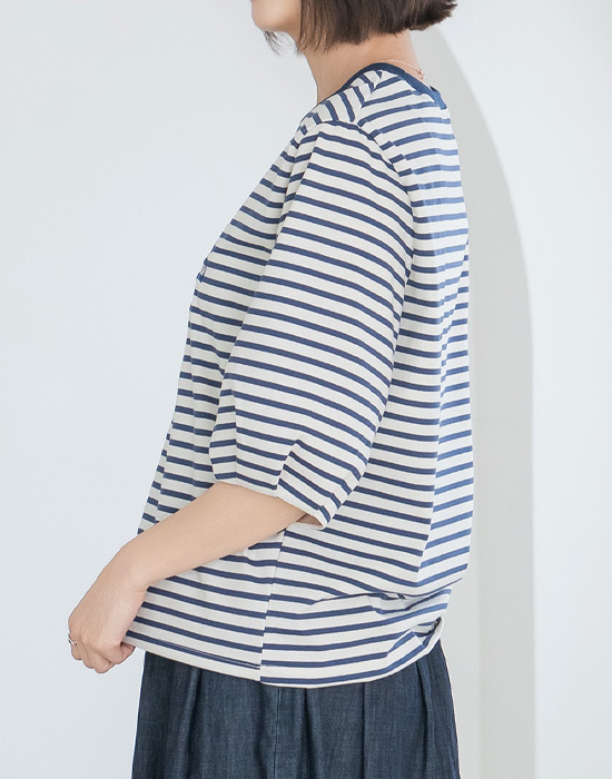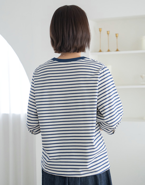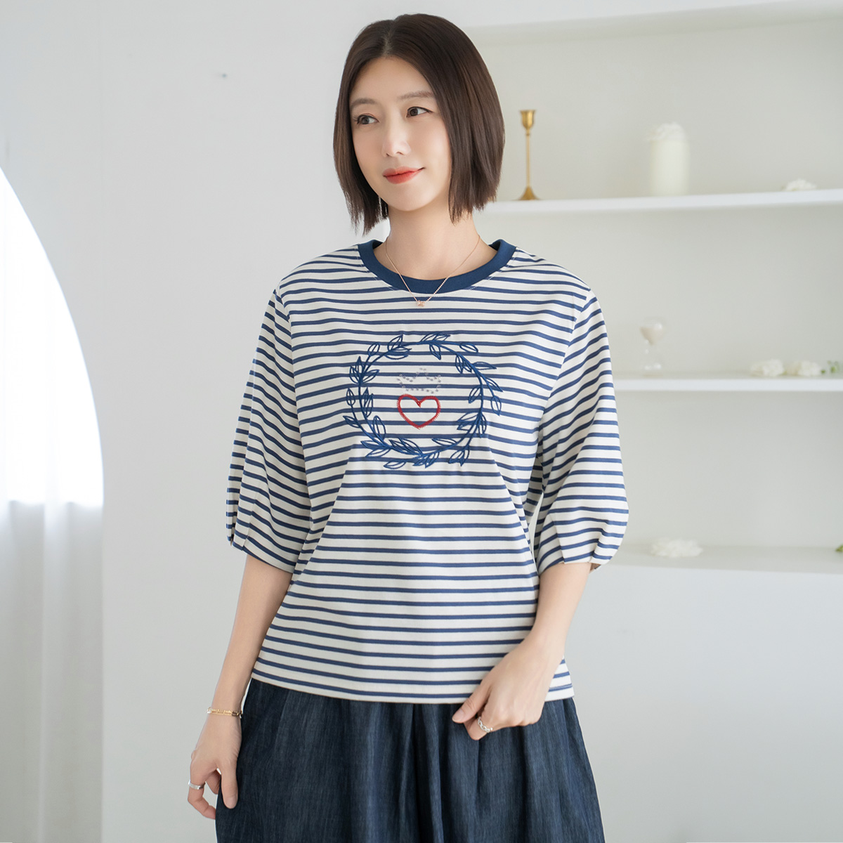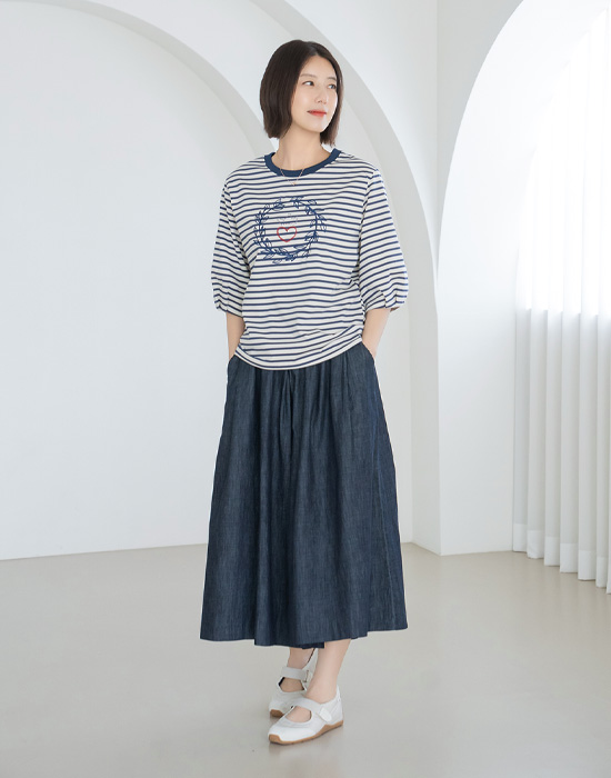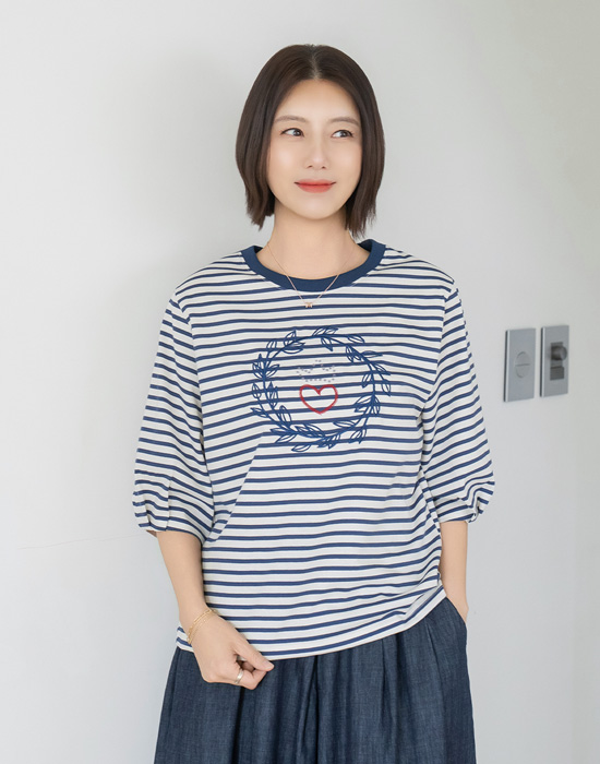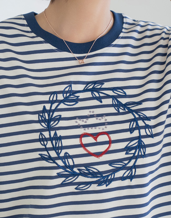 Heart Embroidered Striped T-shirt-TE2604078-